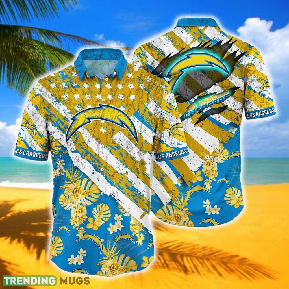 Los Angeles Chargers NFL SAS Floral Print American Flag Beach Hawaiian Shirt For Fans Gift New Shirt Holiday Details: