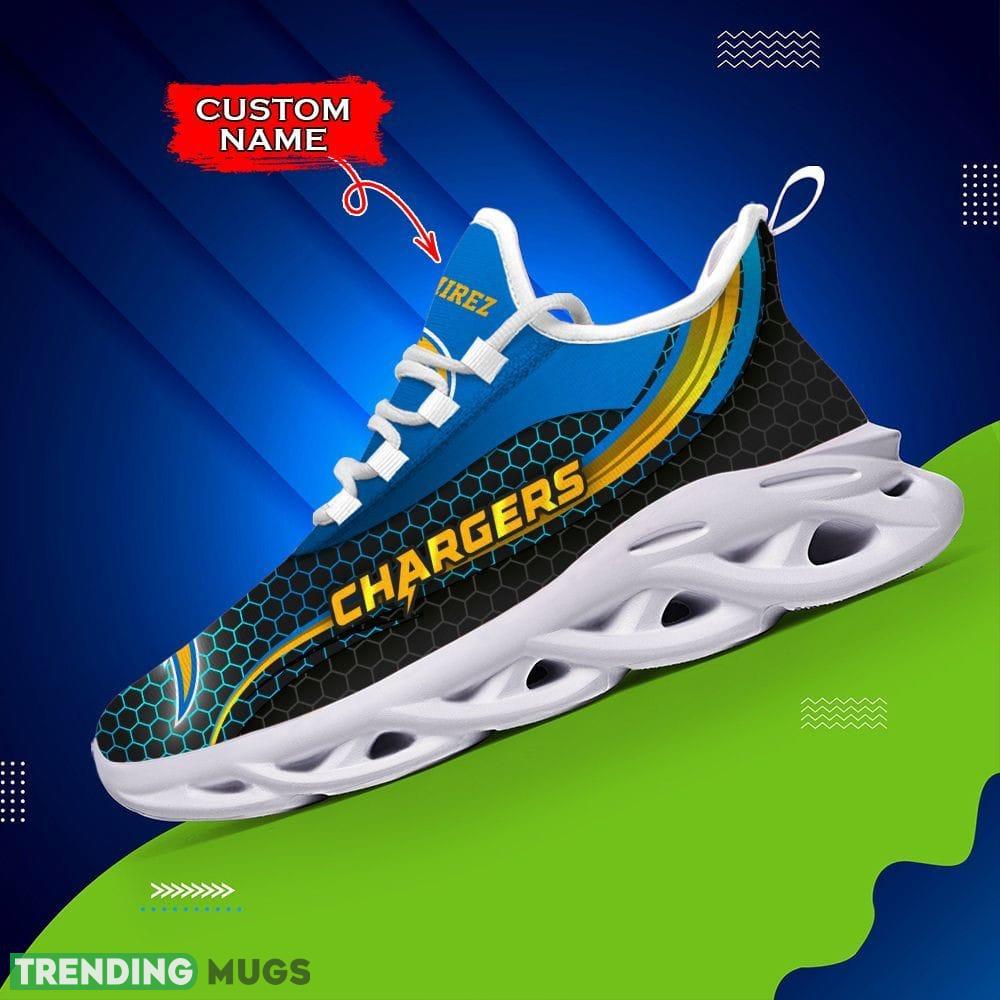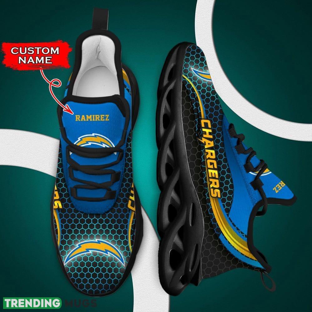 Step up your game with the Los Angeles Chargers Top Custom Name Max Soul Shoes! These luxury NFL Clunky shoes are not only stylish but also the perfect gift for both men and women. Show off your love for the Chargers with these eye-catching kicks that feature a custom name design. Made with premium materials, these shoes offer maximum comfort and durability, making them ideal for everyday wear or game day. Whether you’re heading to the stadium or simply want to make a bold fashion statement, these Los Angeles Chargers Top Custom Name Max Soul Shoes are the perfect choice. Don’t miss out on this must-have item for any true Chargers fan. Upgrade your shoe collection today!