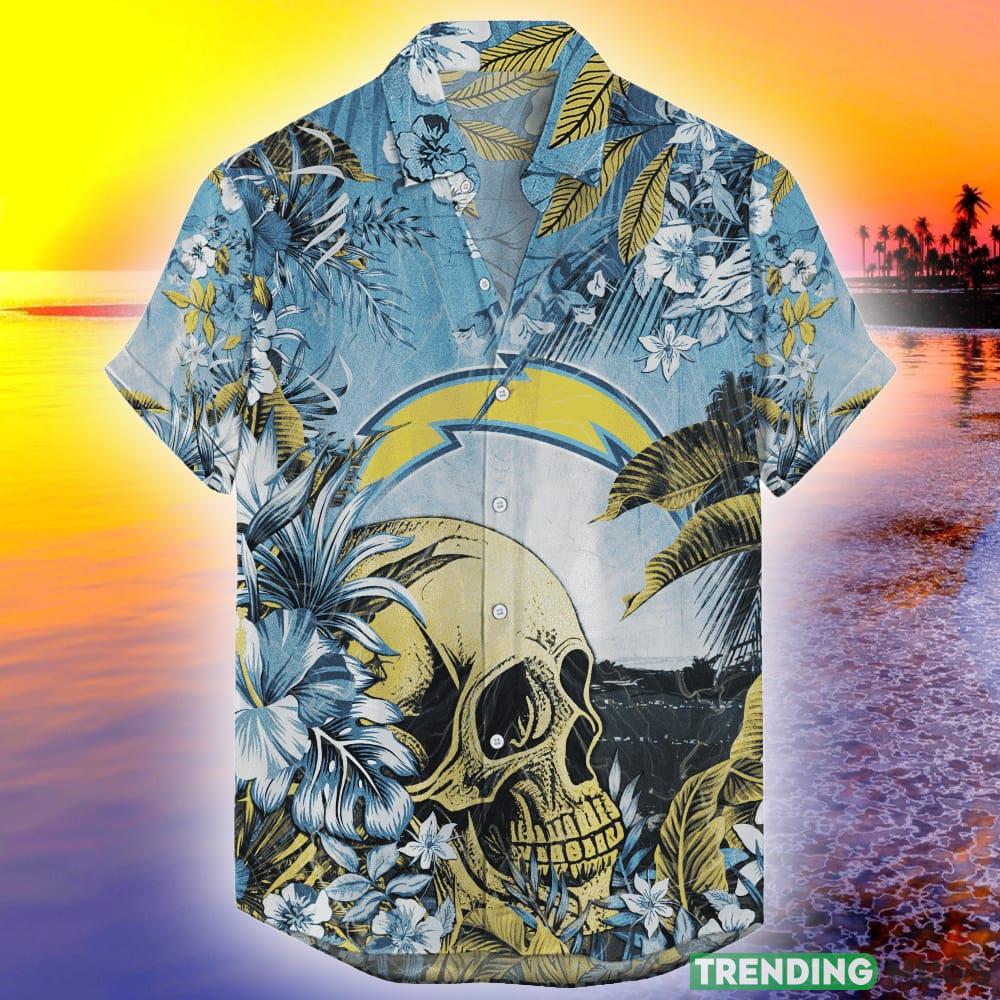 Los Angeles Chargers Tropical Skull NFL Design 5 Beach Hawaiian Shirt Men And Women For Fans Gift Details: