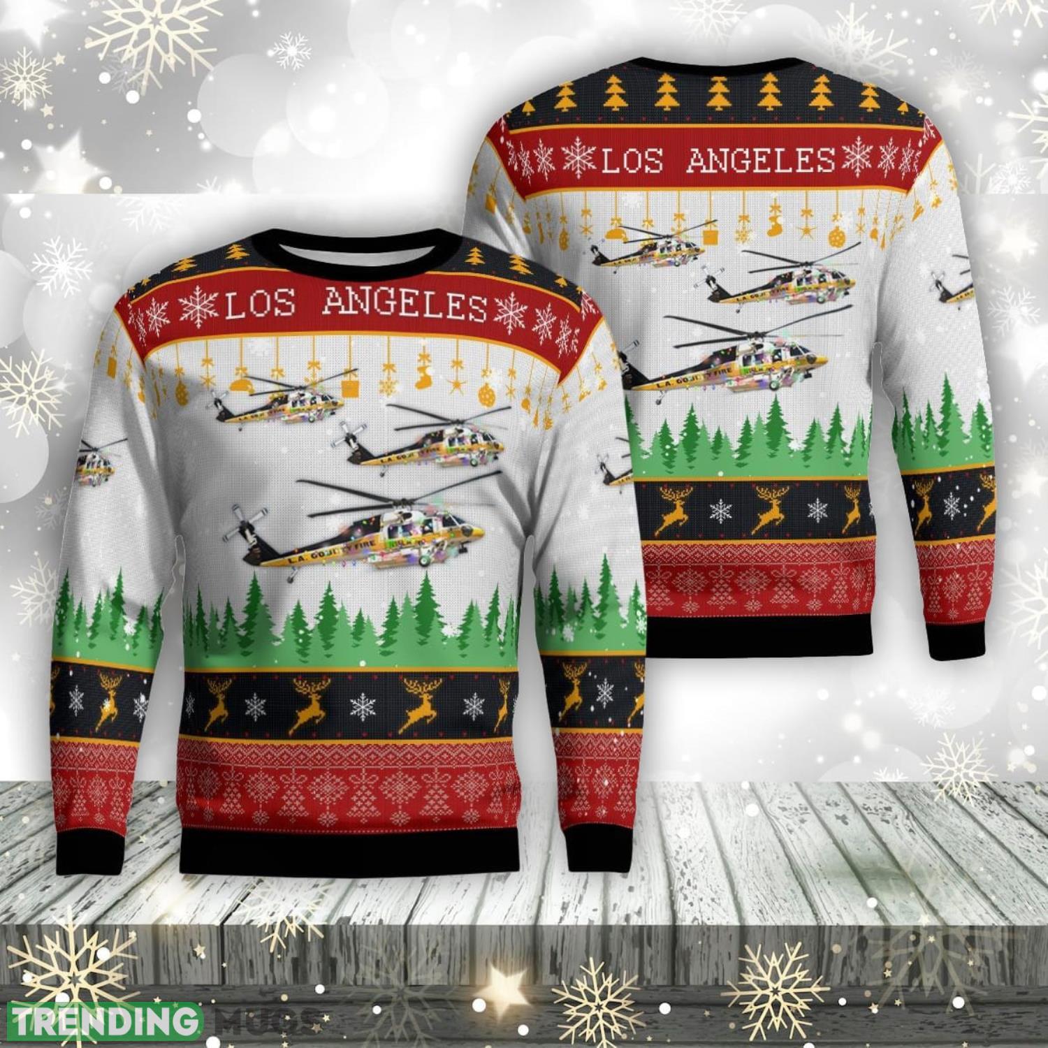 Los Angeles County Fire Department Sikorsky S-70A Firehawk Christmas AOP Ugly Sweater Informations: