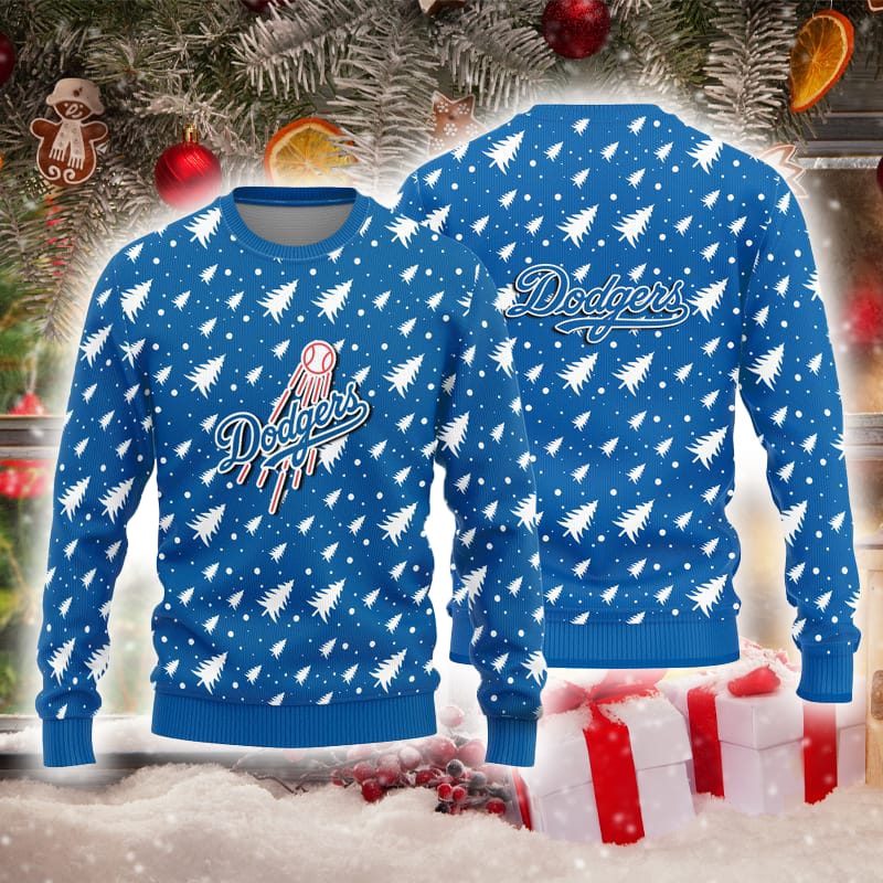 Los Angeles Dodgers Christmas Pine Tree Patterns Pattern Knitted Ugly Christmas Sweater AOP Gift For Men And Women Informations: