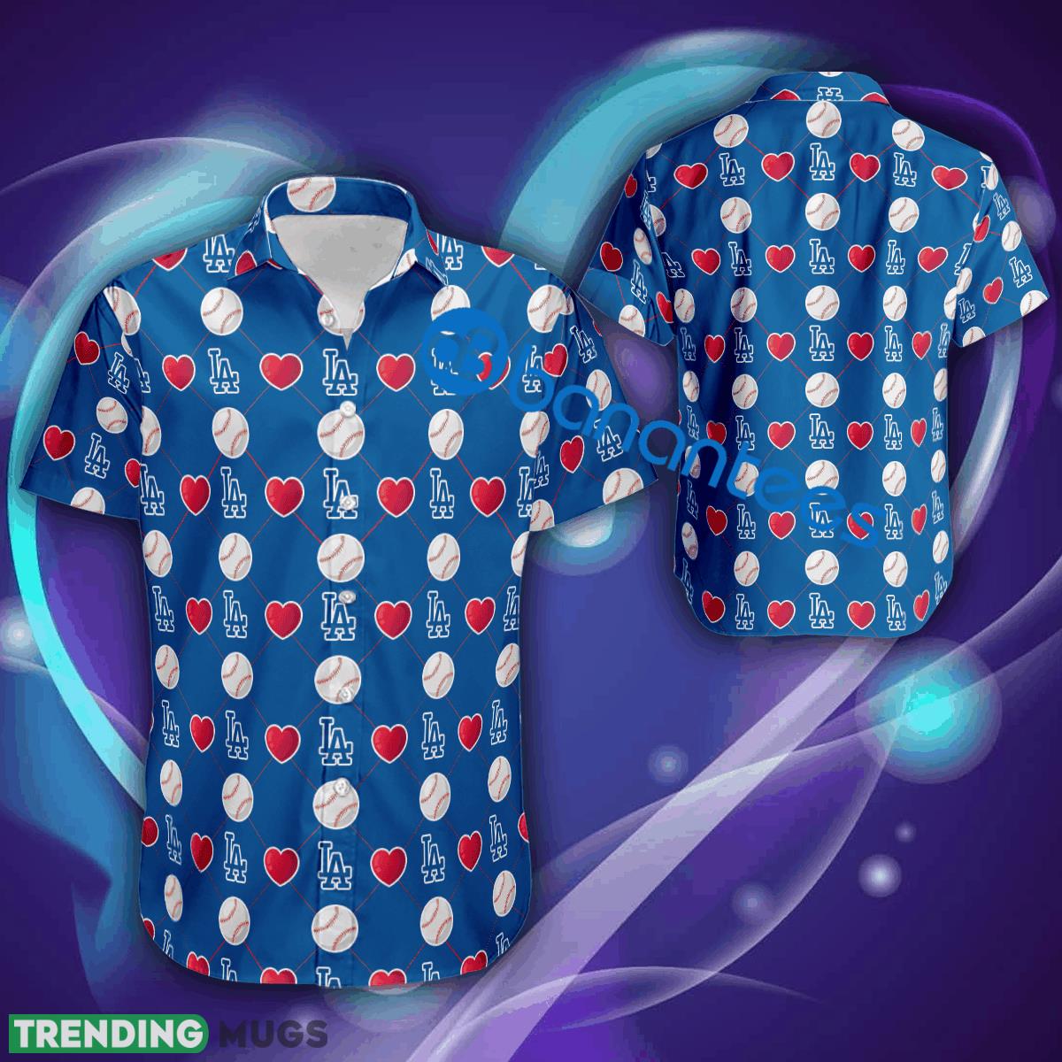 Los Angeles Dodgers Logo Heart Pattern Valentines 3D Hawaiian Shirt For Men And Women Details:
