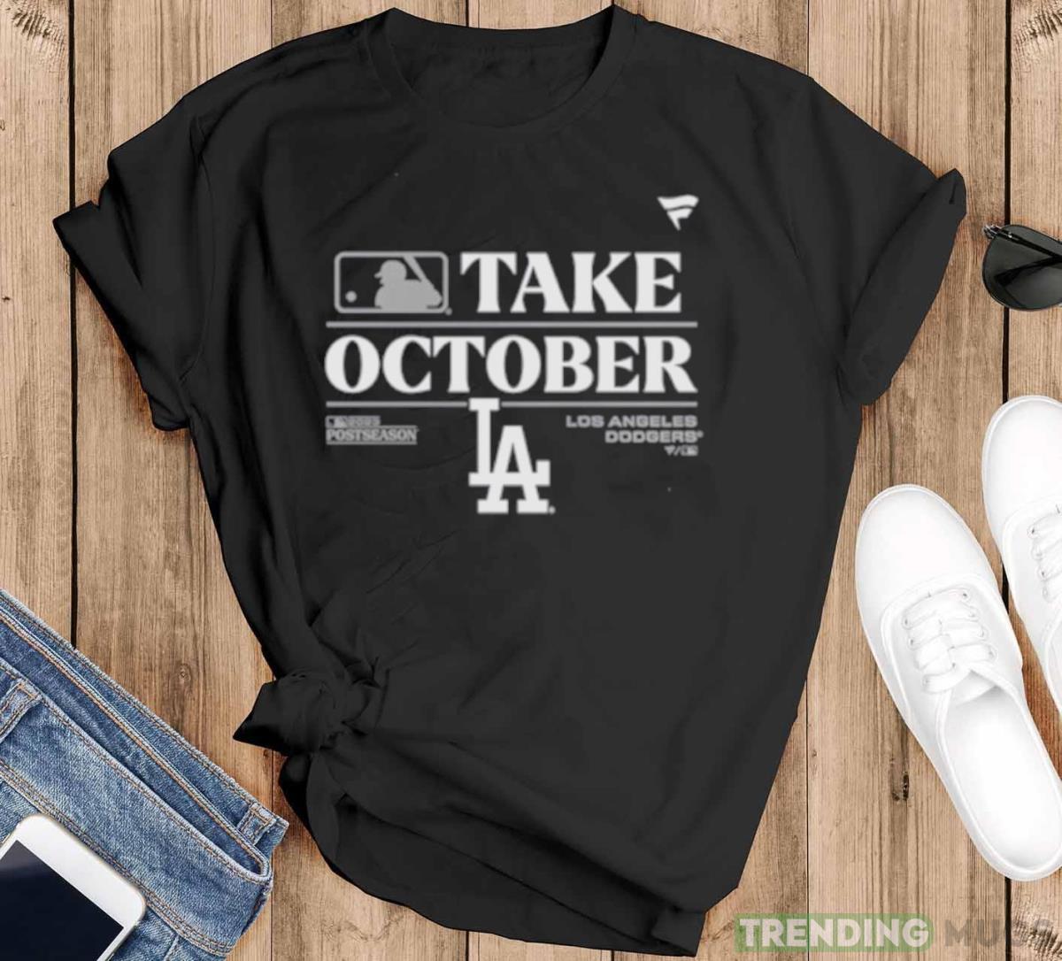 Get ready to show off your support for the Los Angeles Dodgers in the most stylish way possible with our Los Angeles Dodgers MLB Take October 2023 Postseason shirt! As the postseason approaches, you’ll want to be decked out in the best gear to cheer on your favorite team. This official MLB shirt features the iconic Dodgers logo, proudly showcasing your loyalty. Crafted with premium quality materials, this shirt ensures ultimate comfort while you cheer, shout, and celebrate every winning moment. Whether you’re watching the game from the stands or enjoying it from the comfort of your home, our Los Angeles Dodgers MLB Take October 2023 Postseason shirt is the ultimate must-have for any true fan. Don’t miss out on this limited edition piece that perfectly captures the excitement and anticipation of the postseason. Grab yours now and be ready to take on October in style!