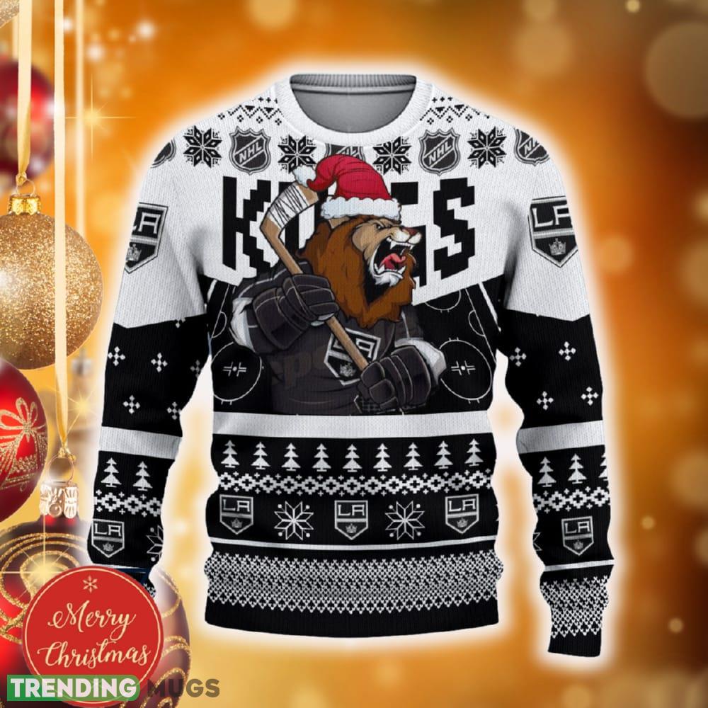 Crafted with care, this sweater features a unique design that combines the iconic Los Angeles Kings logo with a playful and humorous twist. The angry expression on the face of our beloved mascot is sure to bring a smile to everyone’s face, making it a great conversation starter at any holiday gathering.