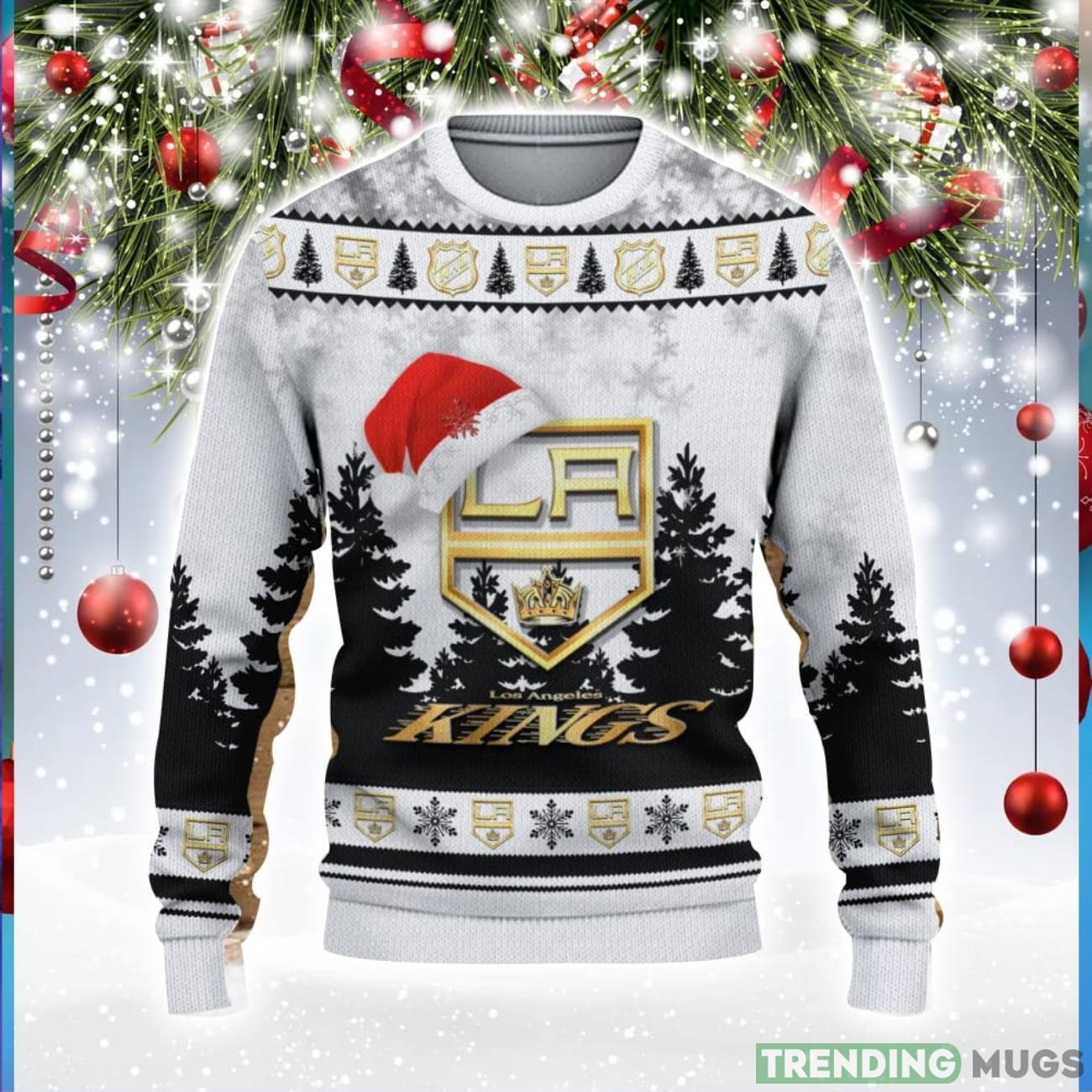 Featuring the iconic Los Angeles Kings logo adorned with a charming Santa hat, this sweater combines team pride with the joy of Christmas. The vibrant colors and intricate design make it a standout piece that will surely impress friends and family at any holiday gathering.