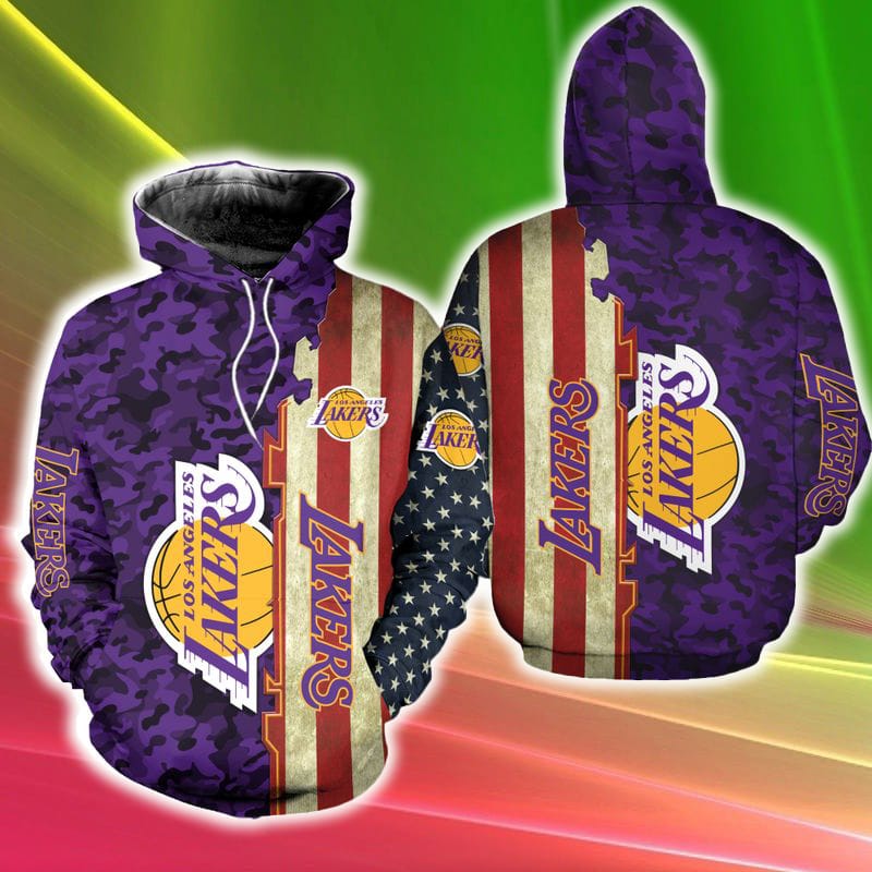 Los Angeles Lakers America Flag Freezing 3D Hoodie Zip Hoodie Cold All Over Printed For Fans Gift Christmas Holidays Information