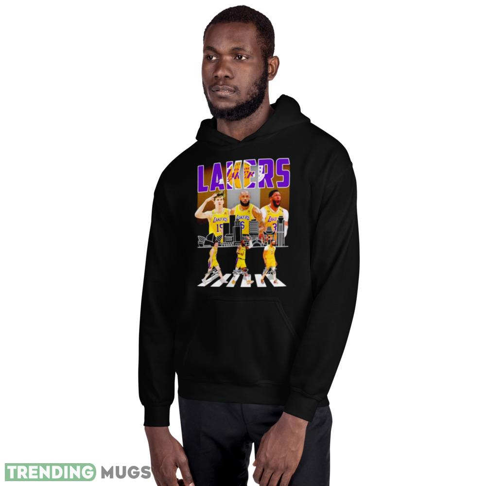 Los Angeles Lakers Austin Reaves LeBron James and Anthony Davis abbey road signatures shirt – 18500 Unisex Heavy Blend Hooded Sweatshirt