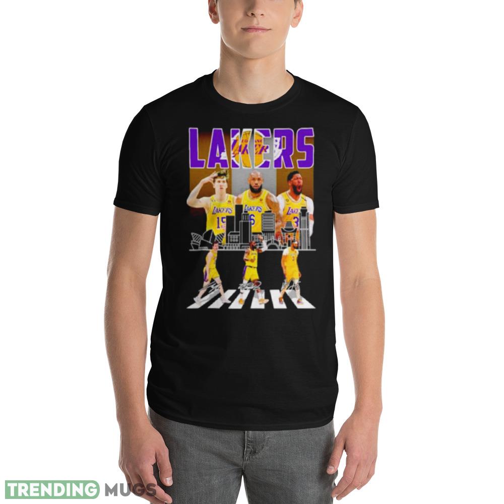 The Los Angeles Lakers Austin Reaves LeBron James and Anthony Davis Abbey Road Signatures Shirt is available in a range of sizes to fit any fan. So whether you’re a die-hard Lakers fan or just looking for a stylish and unique addition to your wardrobe, this shirt is sure to impress. Don’t miss out on your chance to own this must-have piece of Lakers gear!