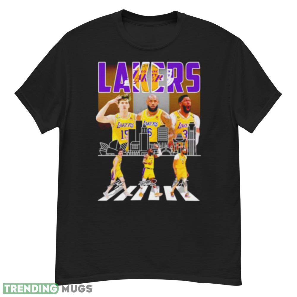 Los Angeles Lakers Austin Reaves LeBron James and Anthony Davis abbey road signatures shirt Details