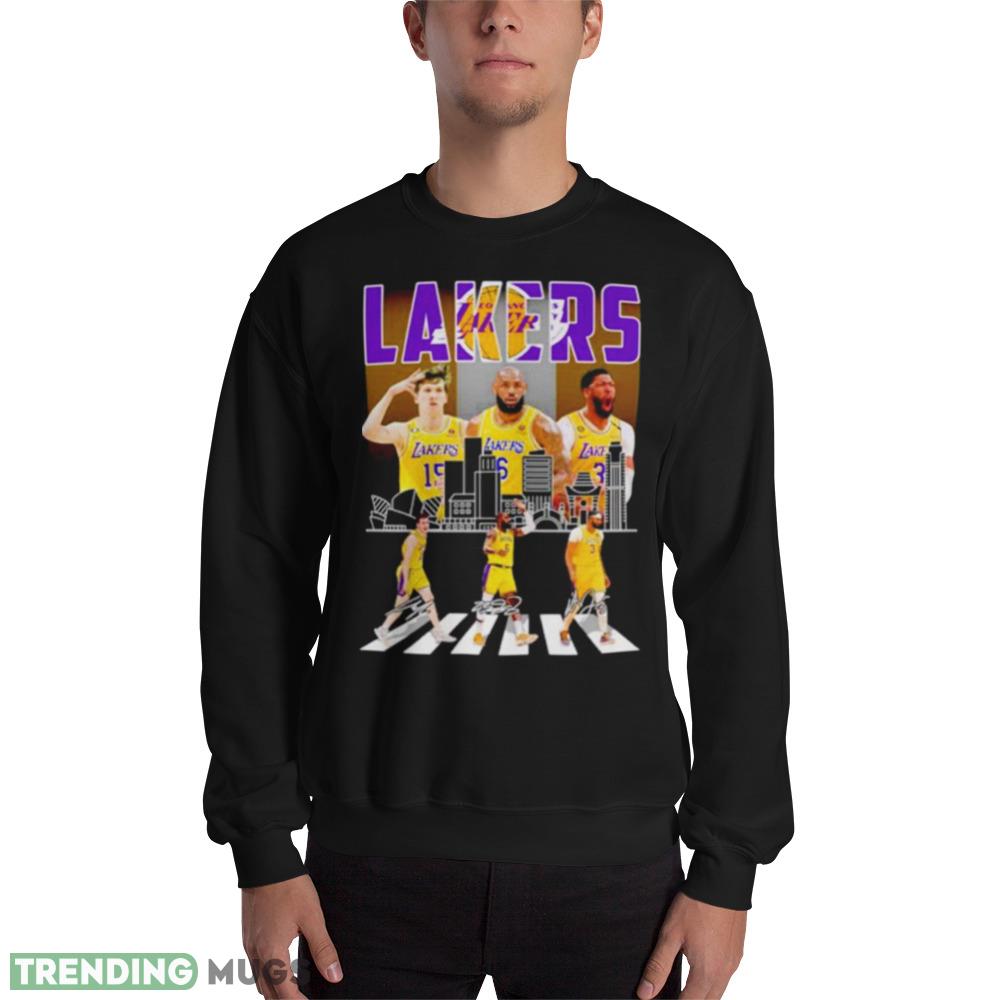 Los Angeles Lakers Austin Reaves LeBron James and Anthony Davis abbey road signatures shirt – 18000 Unisex Heavy Blend Crewneck Sweatshirt