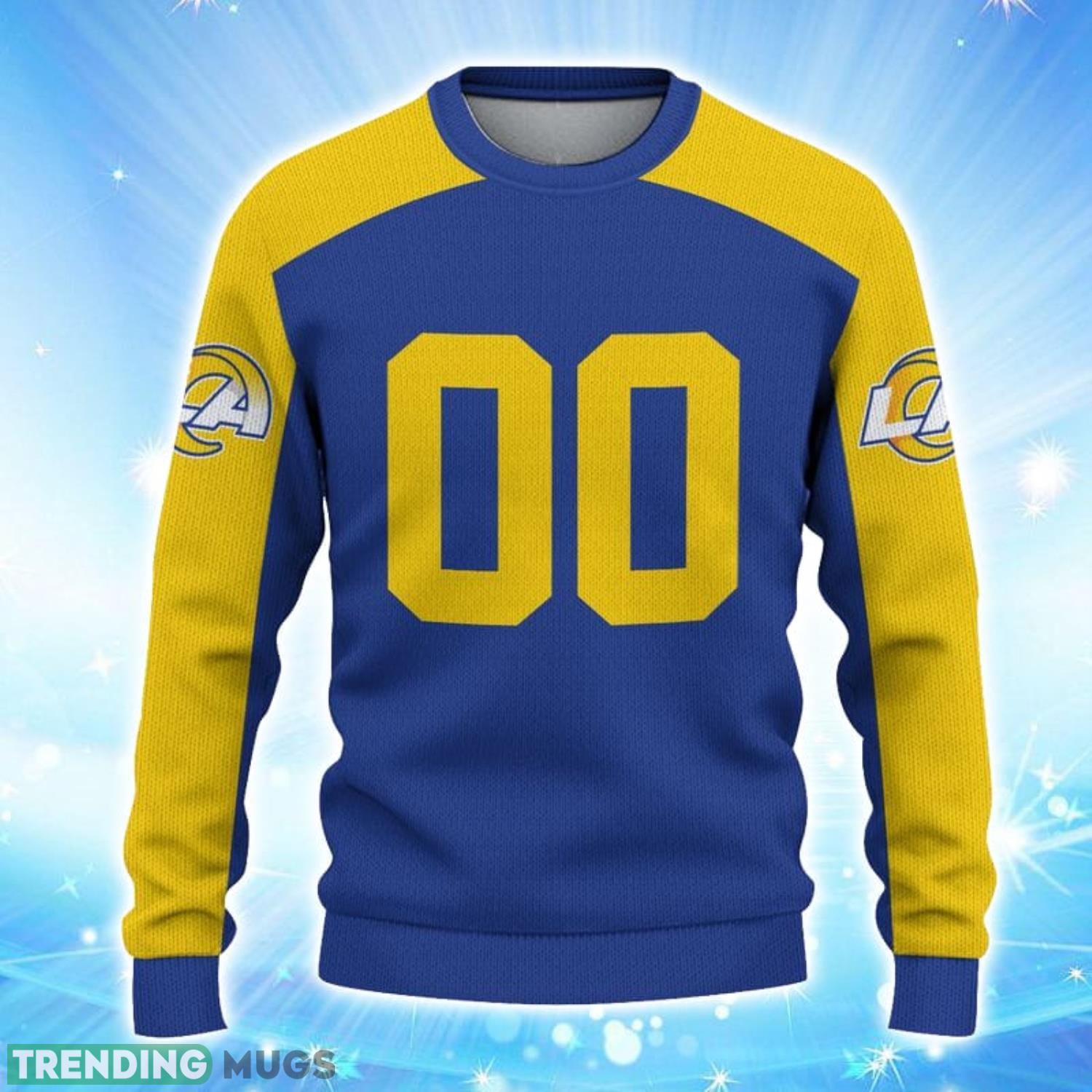 What sets this sweater apart is the option to customize it with your own name and number. Perfect for showcasing your support for your favorite Rams player or simply personalizing it with your own details, this sweater allows you to add a personal touch that makes it truly one-of-a-kind.