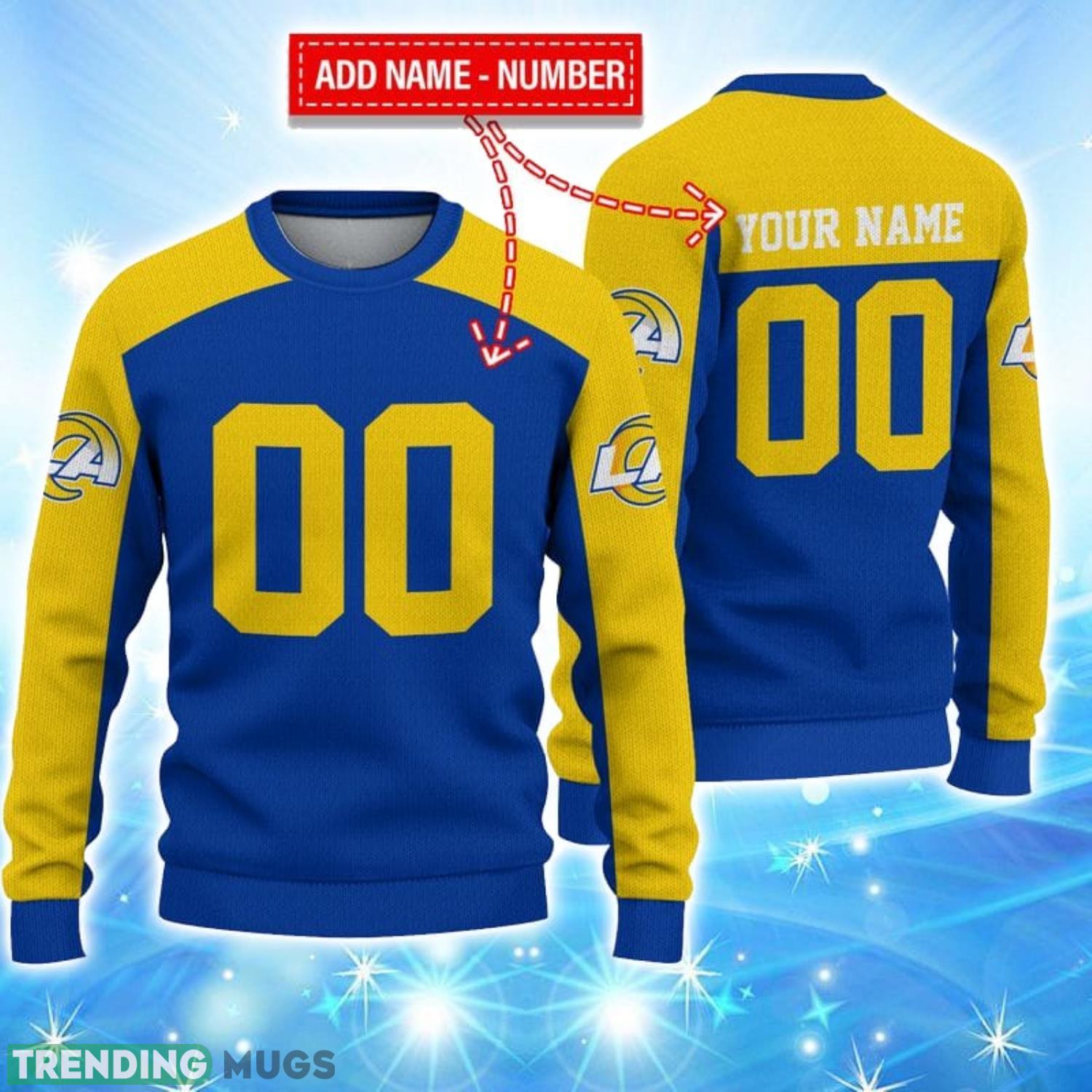 Los Angeles Rams Limited Edition Knitted 3D Ugly Christmas Sweater Custom Name And Number Informations: