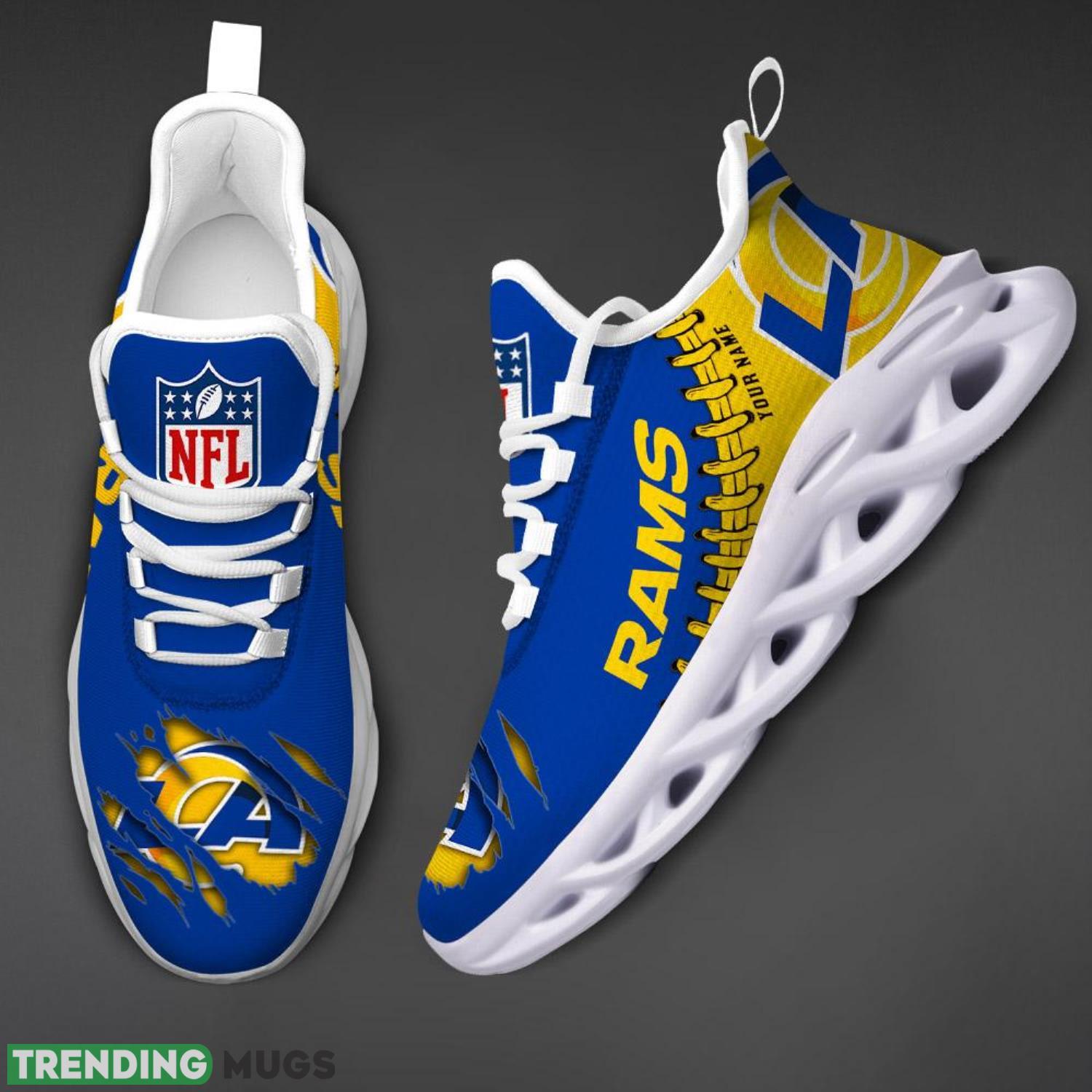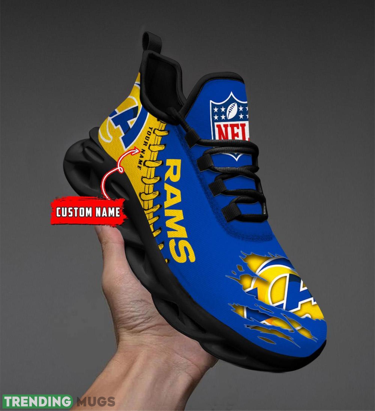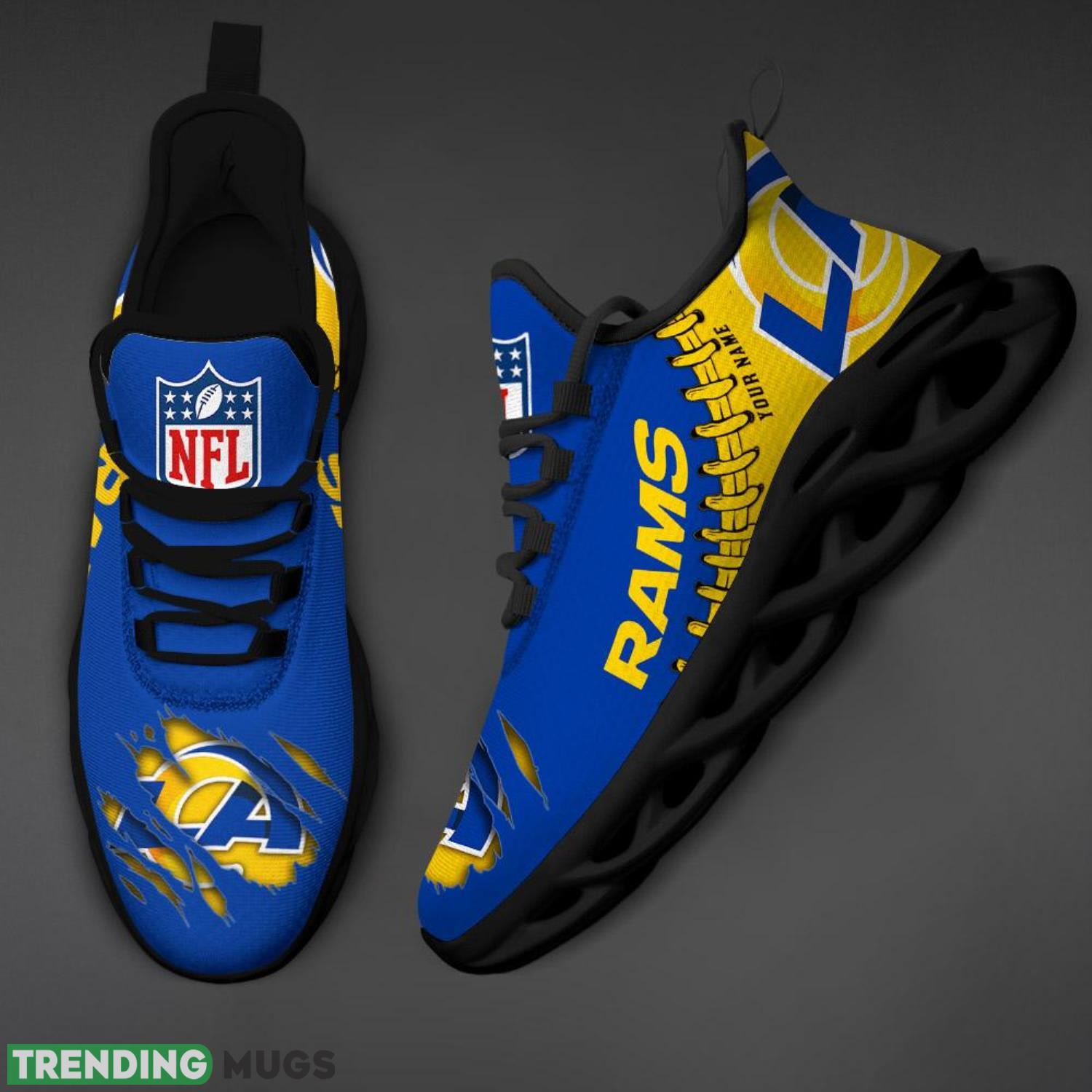 Make a statement and let your Rams fandom shine with our Los Angeles Rams Logo Personalized Name Max Soul Shoes. Whether you’re treating yourself or searching for a perfect gift for a fellow Rams fan, these shoes are a must-have. Don’t just wear any shoes – wear a pair that represents your love for the Los Angeles Rams. Order yours today and take your fandom to a whole new level. Go Rams!