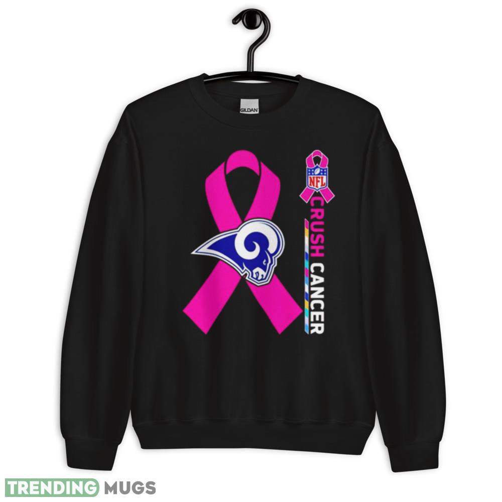 Not only does our Los Angeles Rams NFL Crush Cancer shirt make a bold fashion statement, but it also contributes to a greater cause. A portion of the proceeds from every purchase goes towards cancer research and supporting organizations dedicated to finding a cure. You have the power to make a difference, and this shirt allows you to do just that.