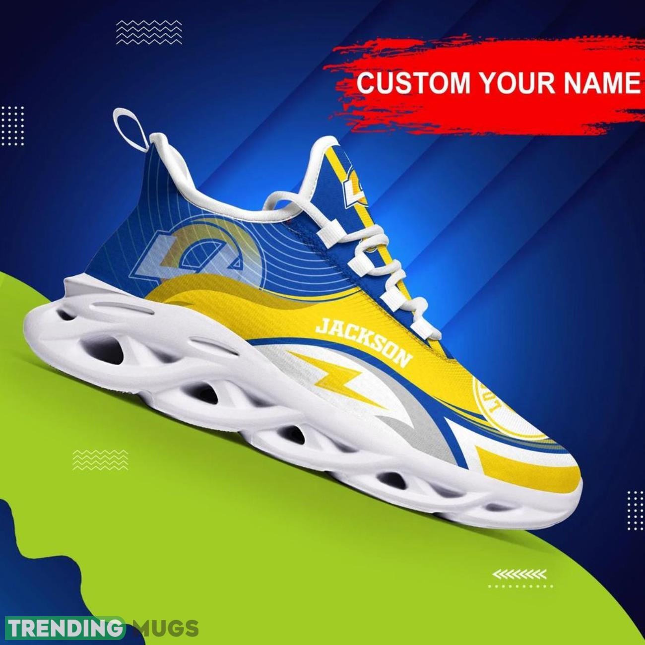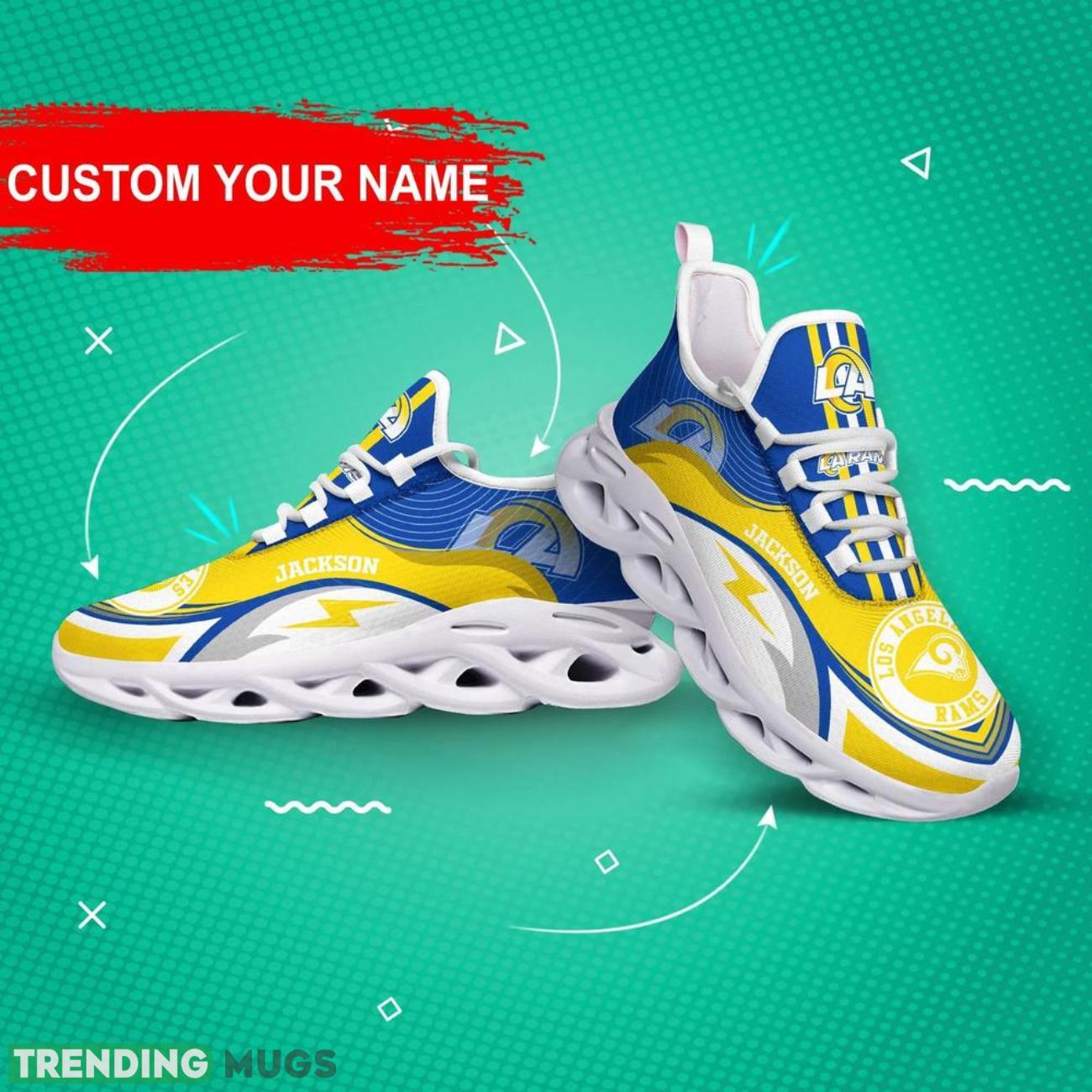 Show your love for the Los Angeles Rams in style with these NFL Max Soul Shoes Custom Name Sneakers! These trendy personalized gifts are perfect for any big NFL fan looking to rep their team in a unique way. Made with high-quality materials and customizable with your own name, these sneakers are sure to turn heads and be the envy of all your friends. Don’t miss out on this hot trending item – grab your pair today and show your team spirit in a whole new way!