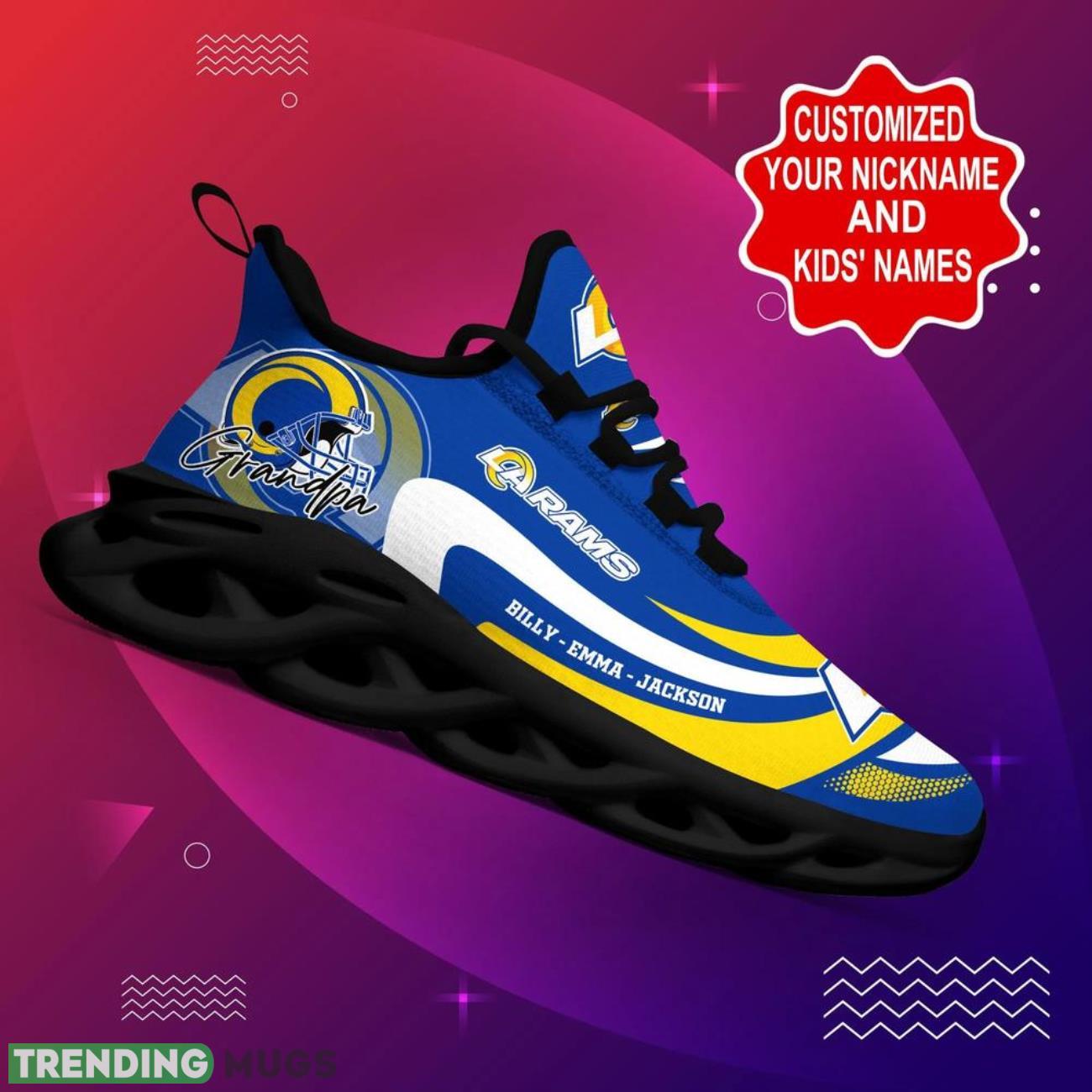 Los Angeles Rams NFL Max Soul Shoes Custom Name Walking Shoes Hot Trending Personalized Gifts information: