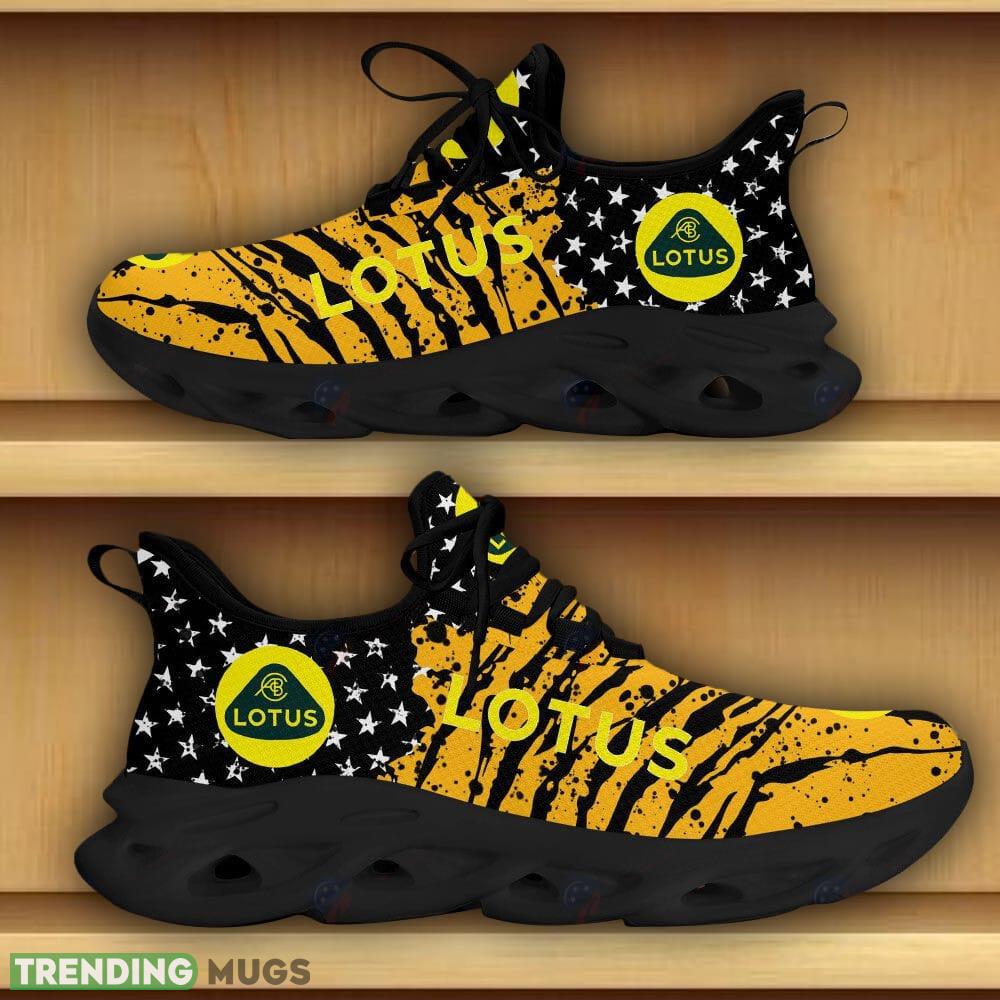 This Lotus Car And Motorcycle Racing Chunky Shoes Yellow Max Soul Sneakers For Men Women is a breathable, lightweight, and comfortable casual outdoor shoe that has a unique design. It is made of a mesh fabric which makes it sweat absorbent and breathable, while the rubber bottom ensures traction, comfort, and durability. It is available in two colors: black or white sole. There are two styles of shoelace holes so you can choose your preference.