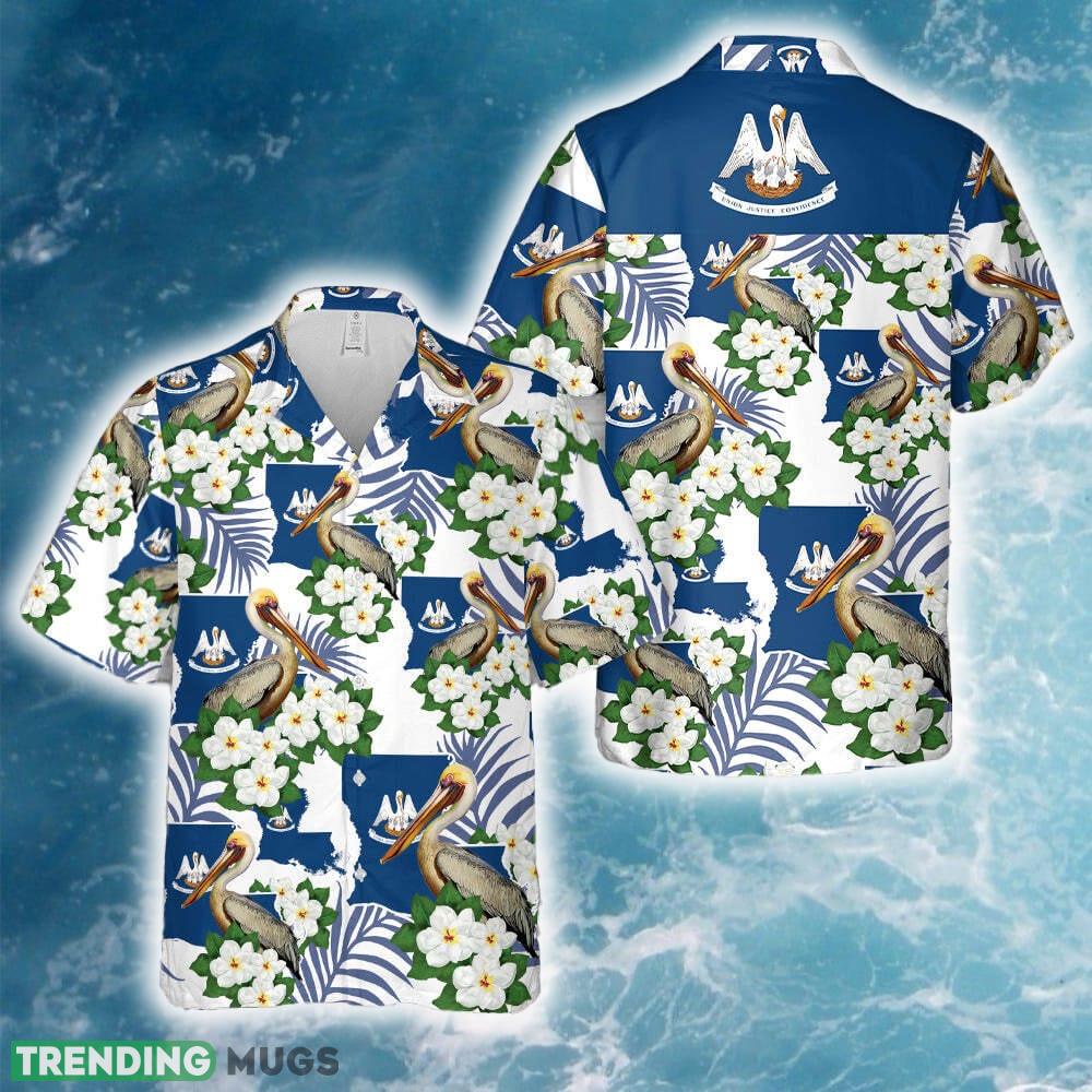 Louisiana State Bird the Eastern Brown Pelican and the State Flower the Magnolia Hawaiian Shirt Beach Summer Details: