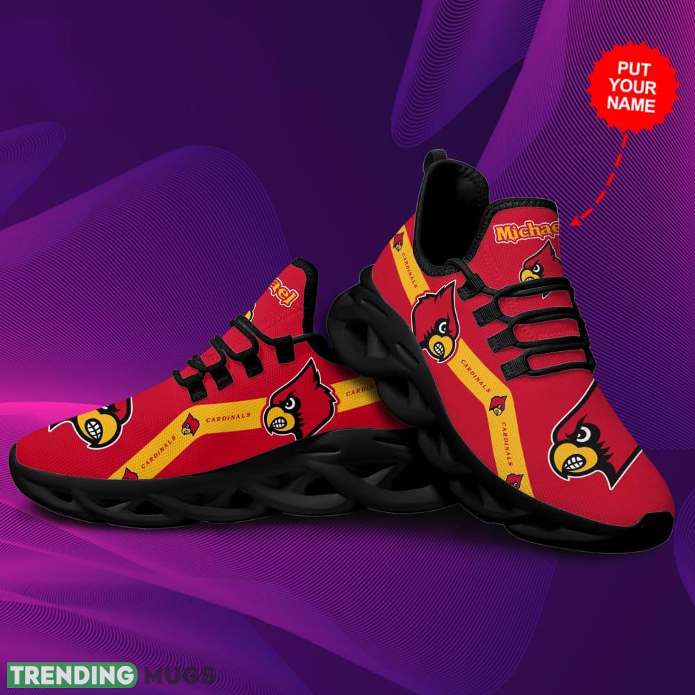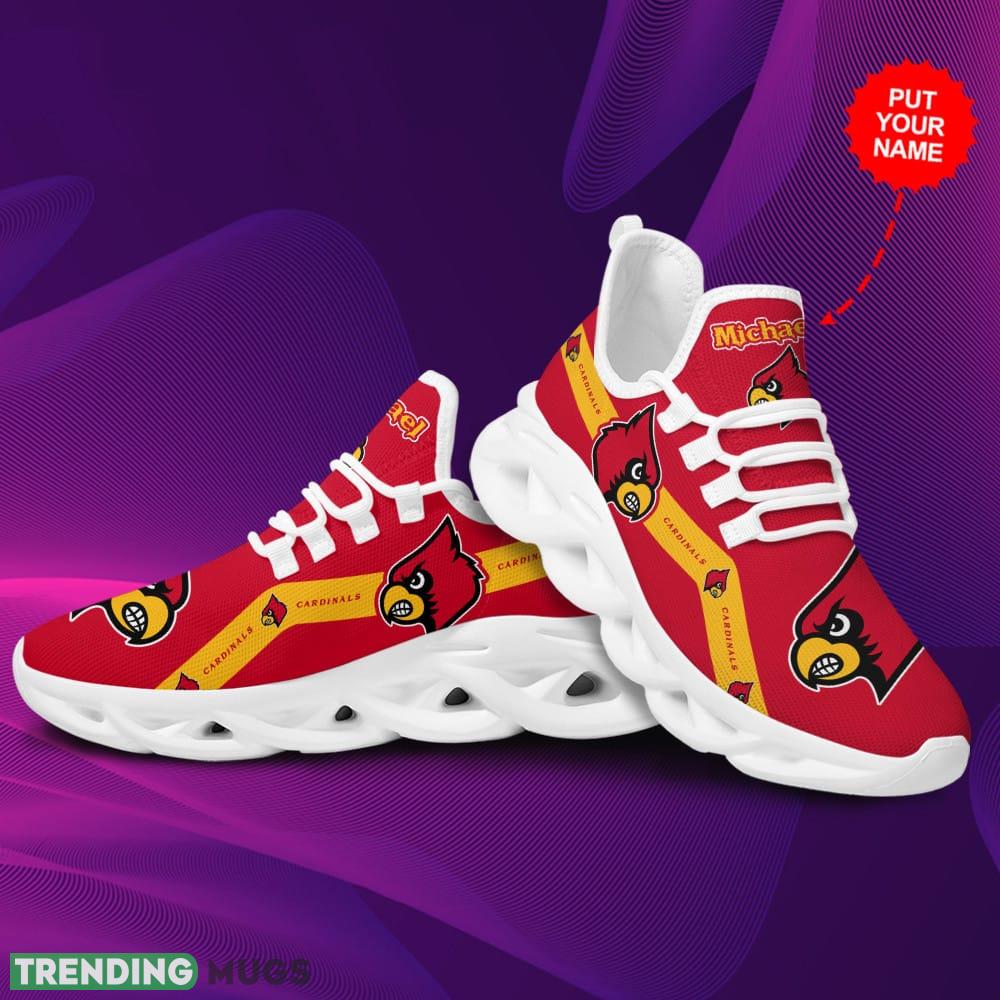 Elevate your fan gear collection with the Louisville Cardinals Designer Custom Name Max Soul Sneakers. Order yours now and step into a realm of luxury, style, and unmatched team pride.