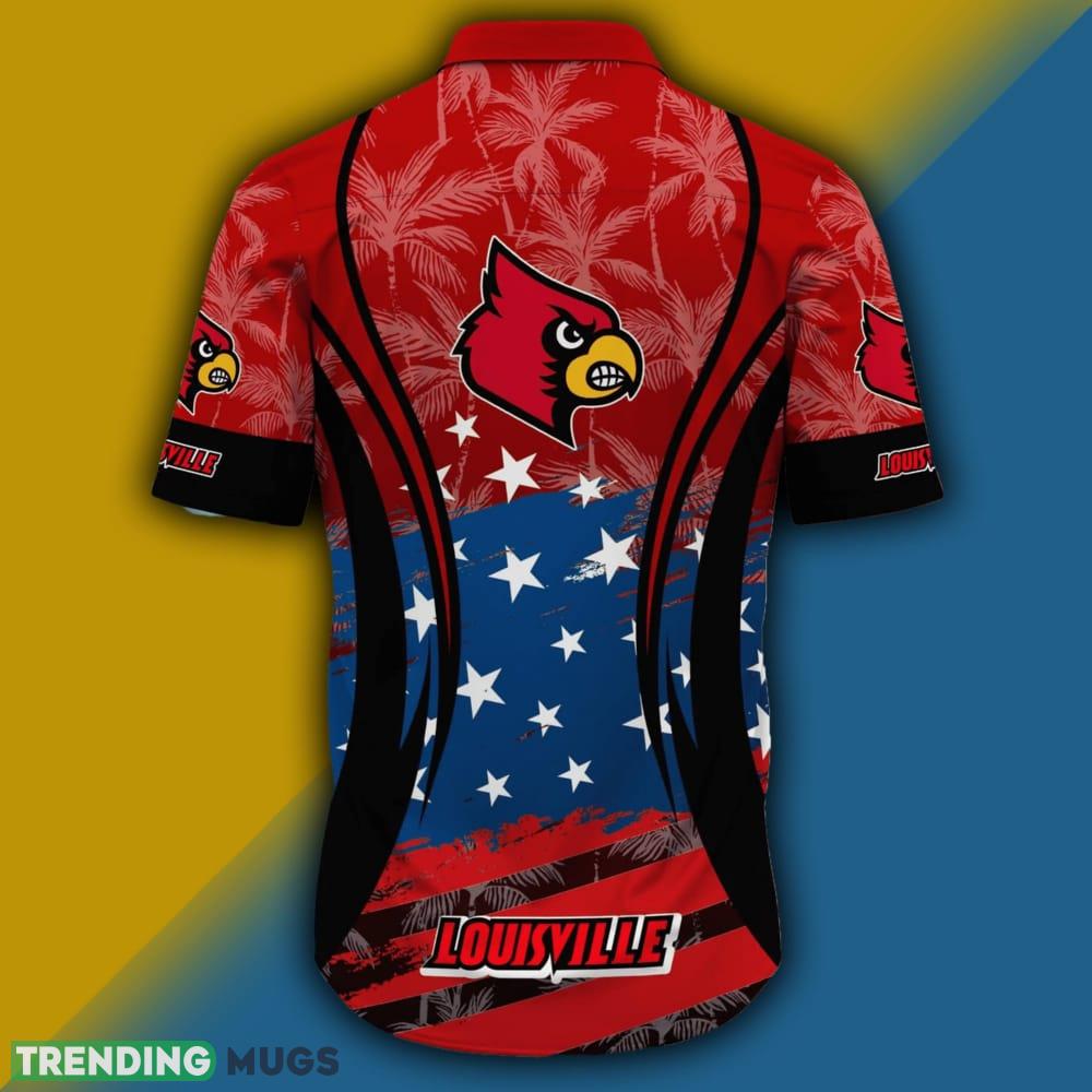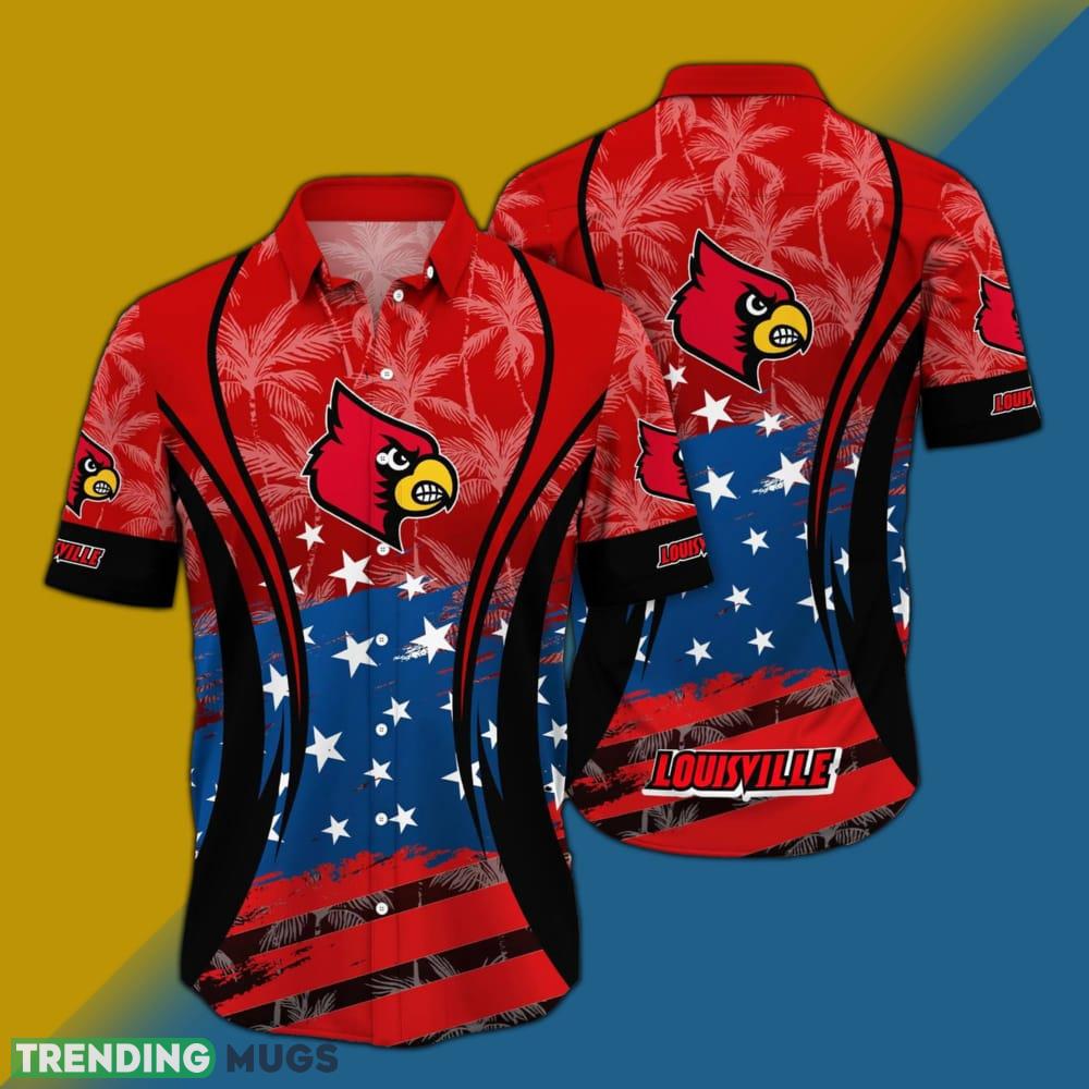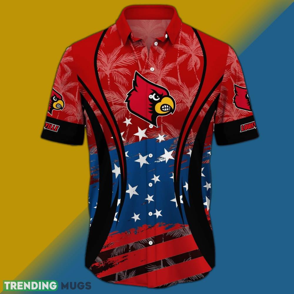 Featuring the iconic Louisville Cardinals logo and a stunning American flag design, this shirt allows you to proudly display your team pride while also showcasing your love for your country. The Hawaiian-inspired pattern adds a unique and fashionable twist, making this shirt a true standout piece.