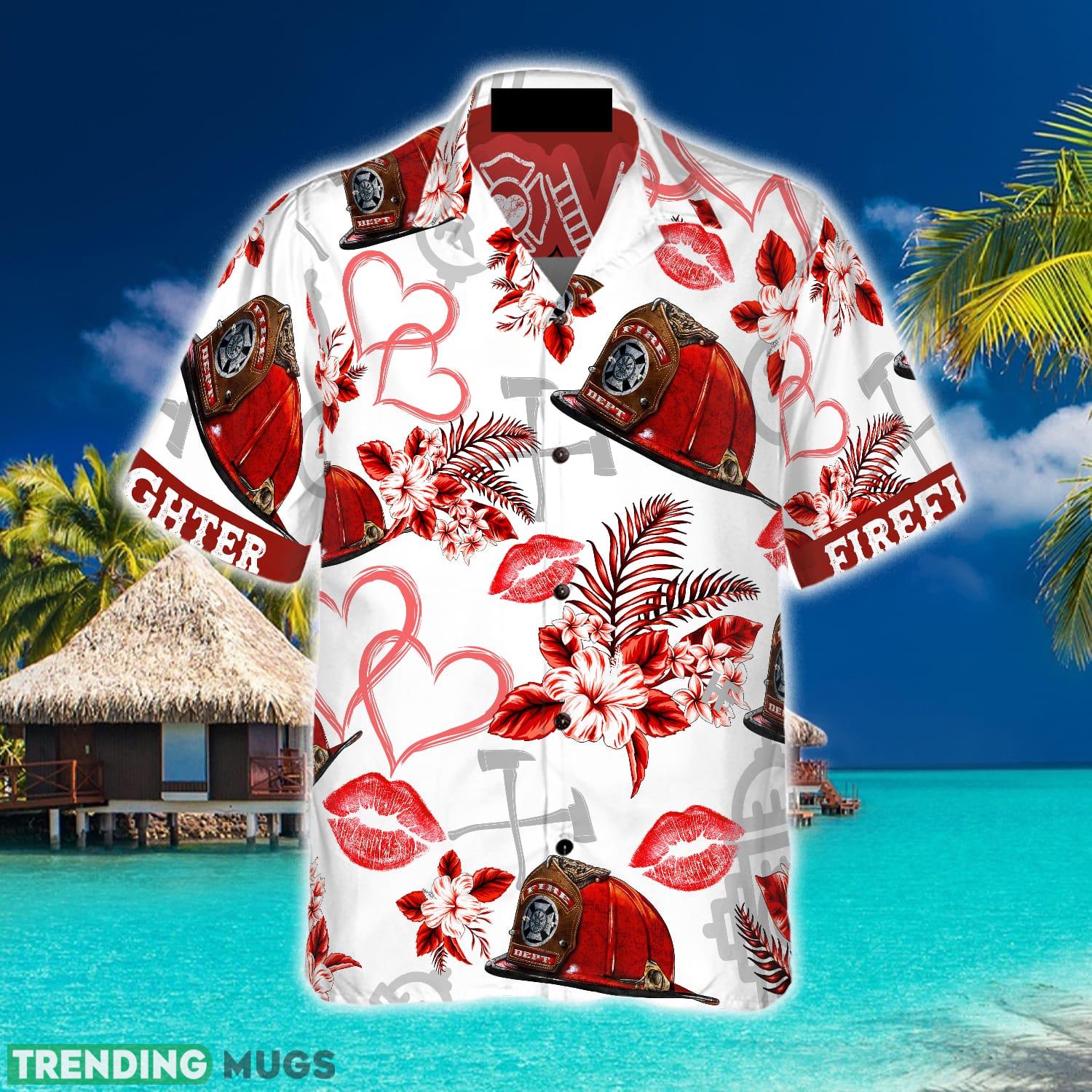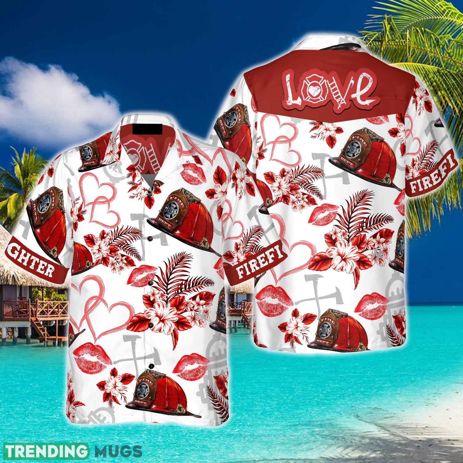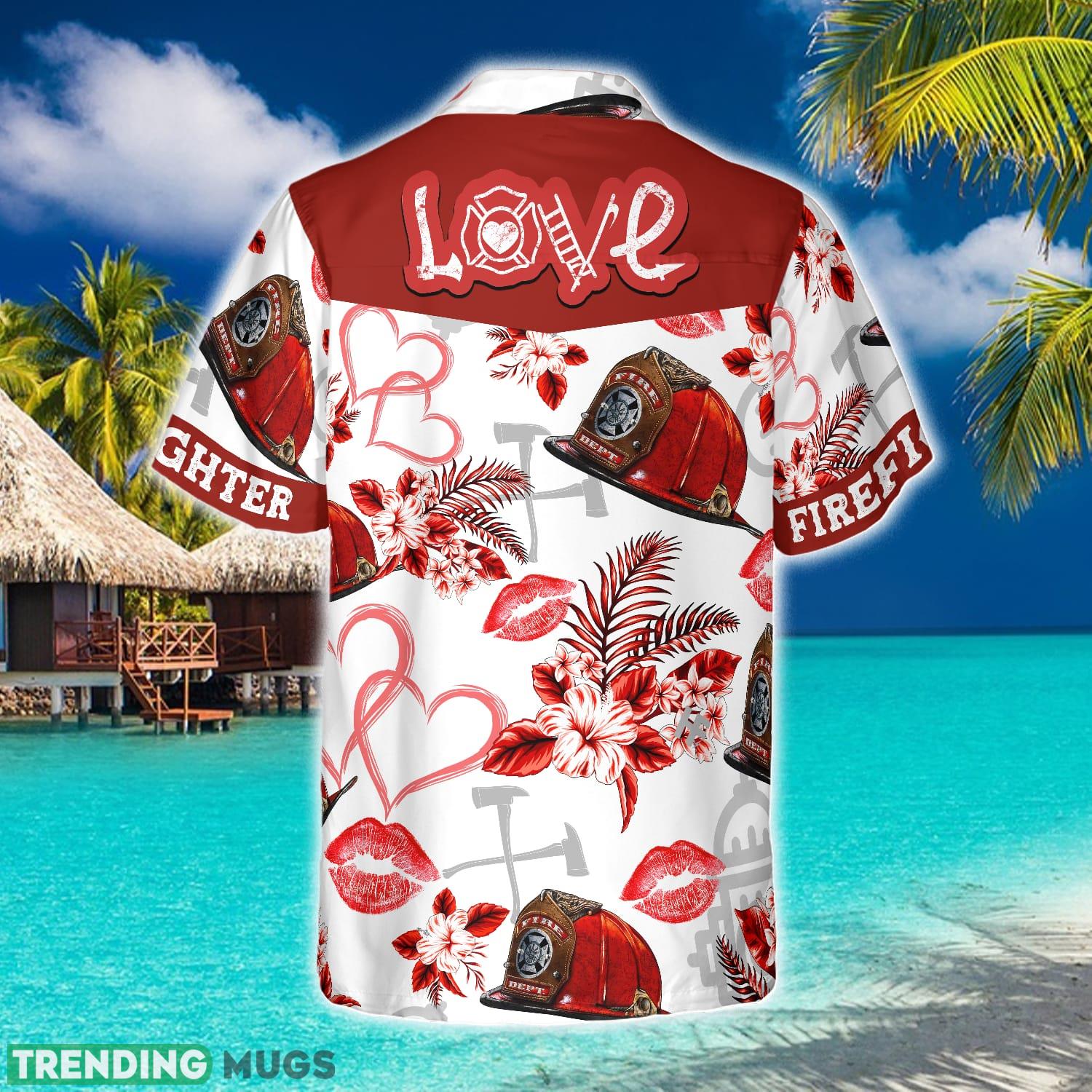 Love Firefighter Helmet Valentine Hawaiian Shirt Summer Beach Gift For Men And Women Details: