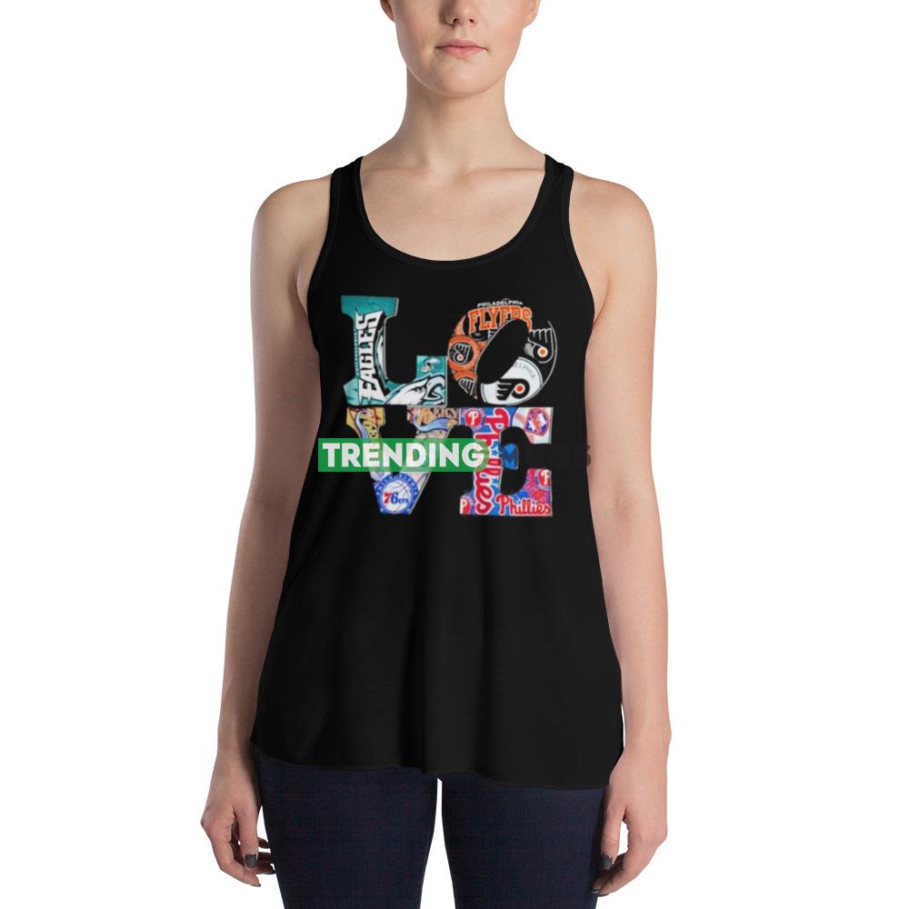 Love philadelphia eagles philadelphia 76ers philadelphia phillies philadelphia flyers 2023 shirt – 8800 Women’s Flowy Racerback Tank