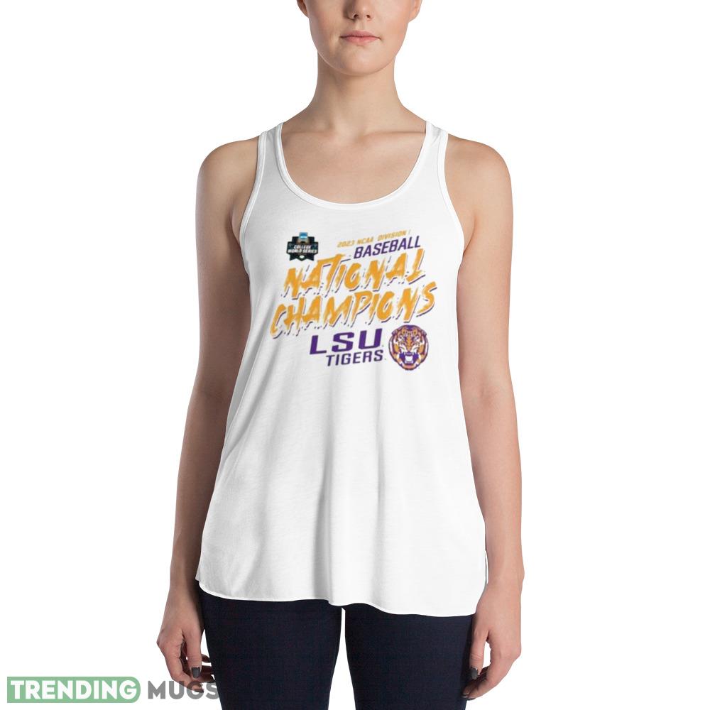LSU Tigers 2023 NCAA DI Men’s Baseball College World Series Champions Slant T Shirt – 8800 Women’s Flowy Racerback Tank
