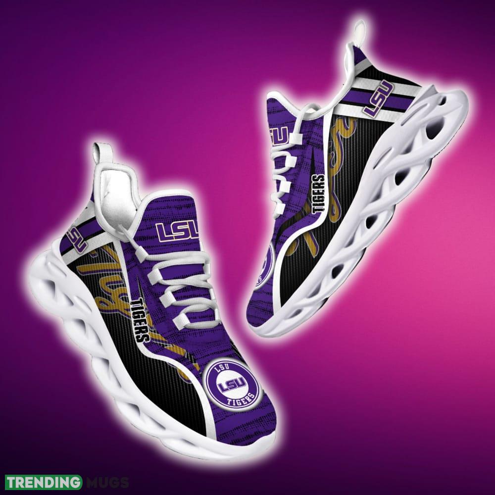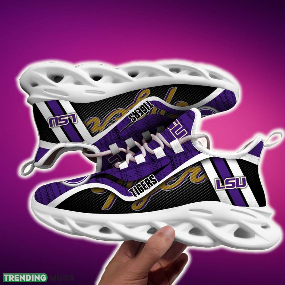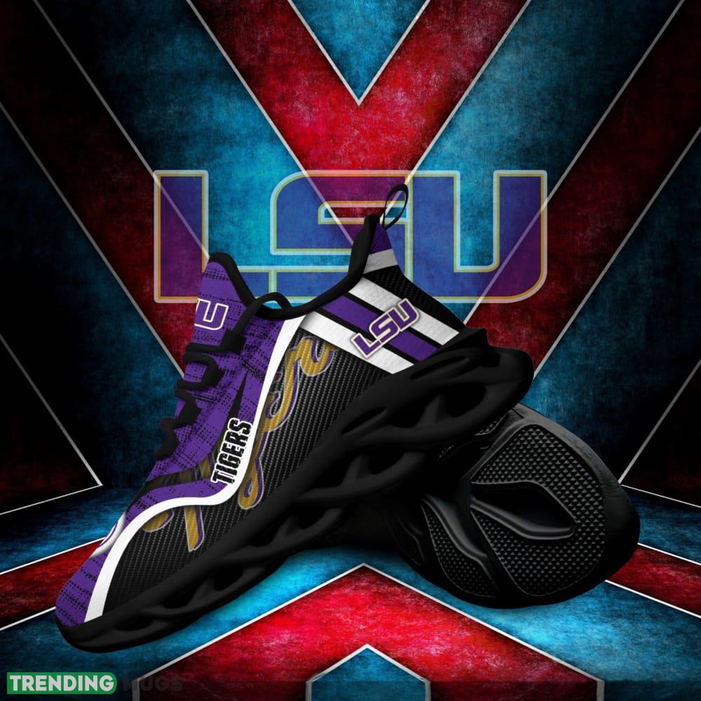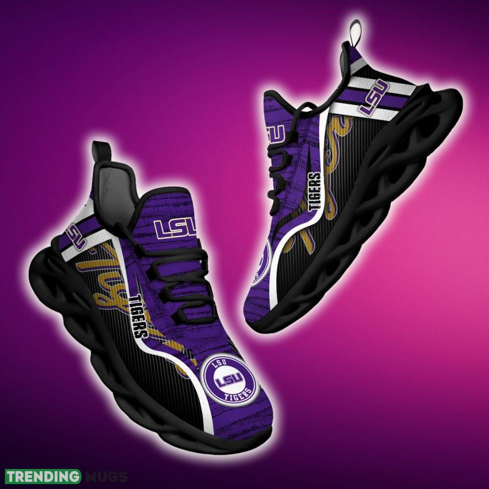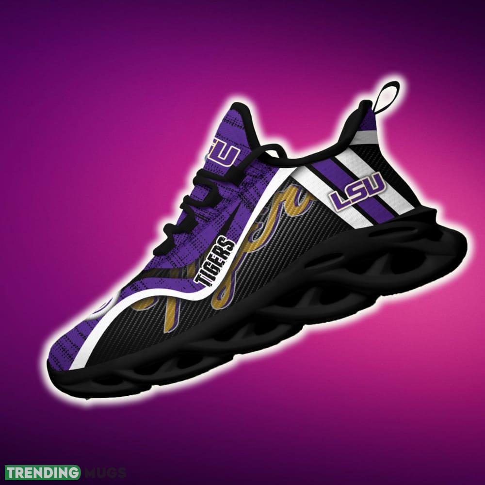 This LSU TIGERS Max Soul Shoes NCAA Teams For Fans Running Shoes New Clunky Sneakers is a breathable, lightweight, and comfortable casual outdoor shoe that has a unique design. It is made of a mesh fabric which makes it sweat absorbent and breathable, while the rubber bottom ensures traction, comfort, and durability. It is available in two colors: black or white sole. There are two styles of shoelace holes so you can choose your preference.