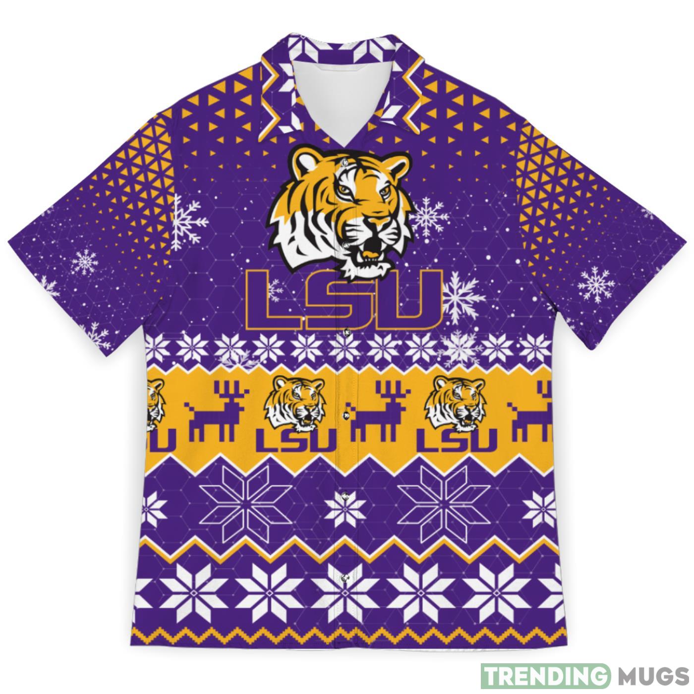LSU Tigers Sports Football Snowflake Pattern 3D Hawaiian Shirt Christmas Gift Details: