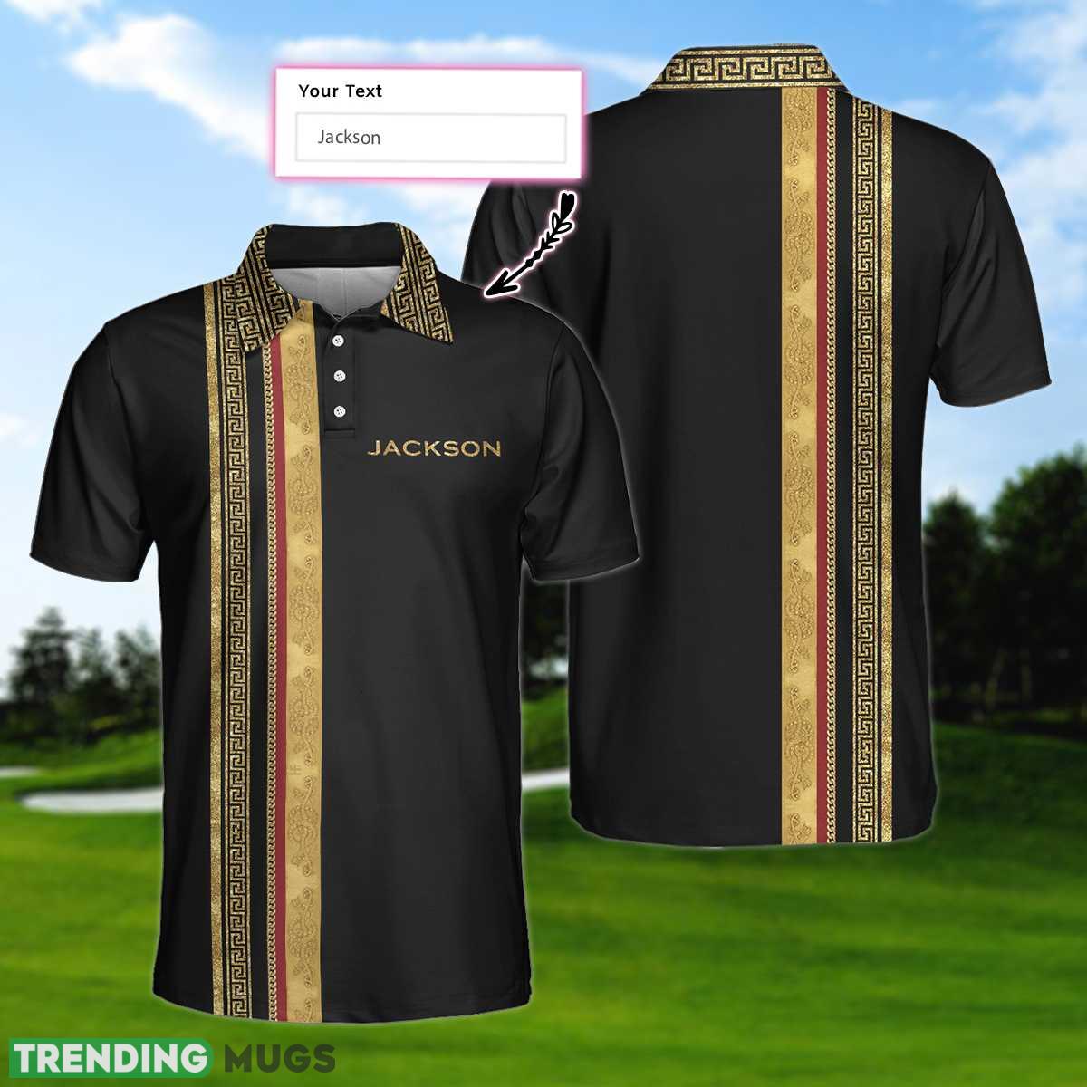 Some of the Luxury Baroque Pattern Golf, Golden Greek Key Pattern Golf Shirt Custom Name Polo Shirt photos