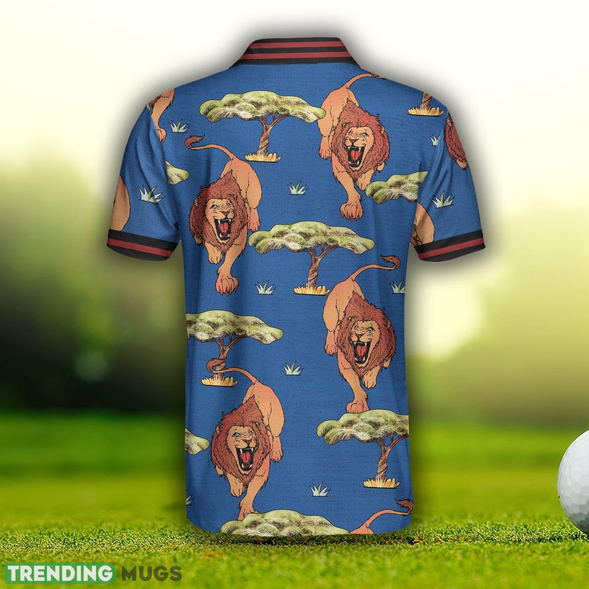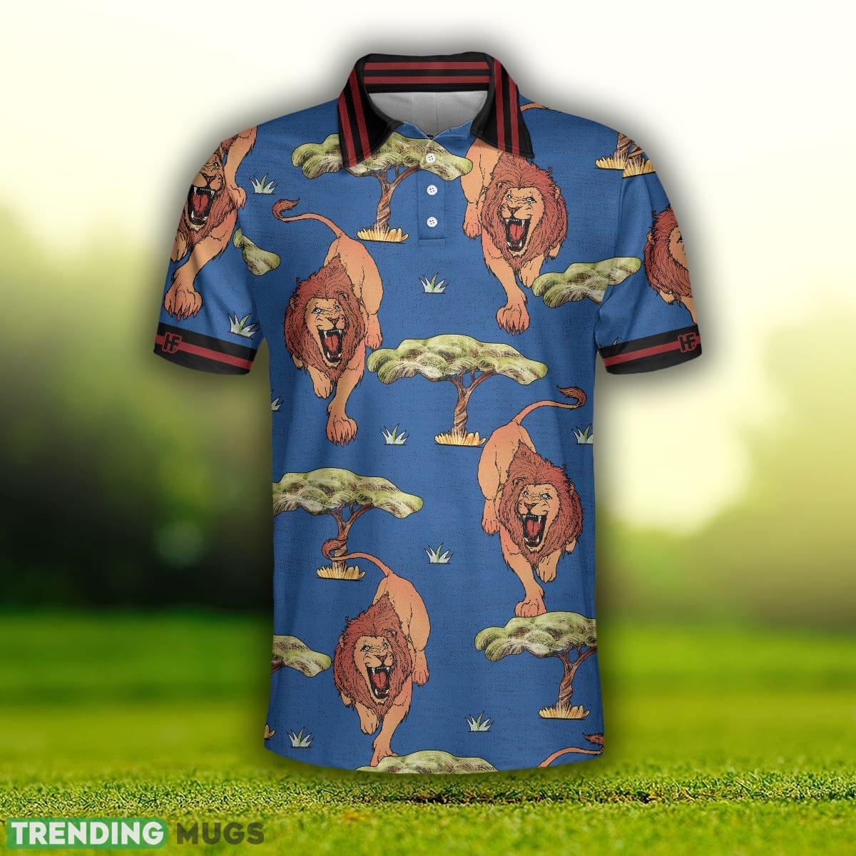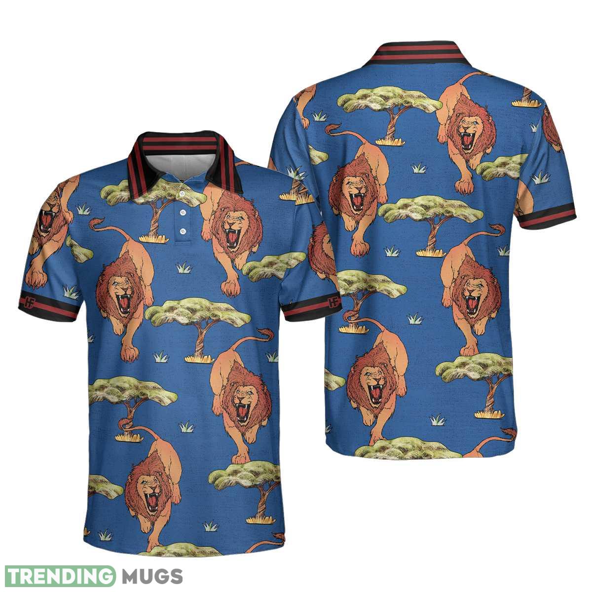 Elevate your style with this luxurious polo shirt and unleash your inner lion king. Embrace the wild side with confidence and make a lasting impression wherever you go. Order now and experience the perfect blend of luxury, comfort, and untamed elegance with our Luxury Lion King, Blue Savanna Biome Lion Pattern, Cool Lion Shirt Polo Shirt.