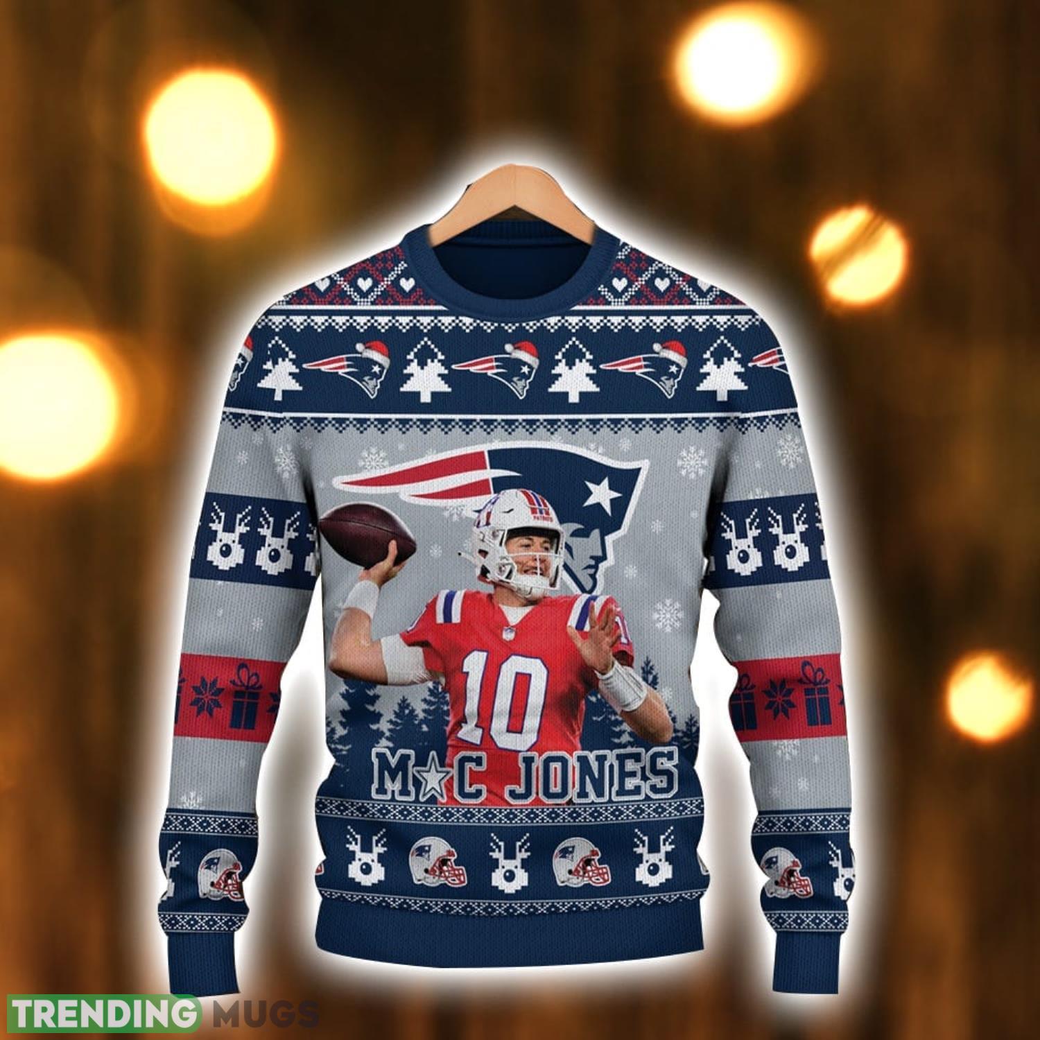 Whether you’re attending a holiday party, cheering from the stands, or simply enjoying the festive atmosphere, this Christmas sweater will become an instant conversation starter. Showcasing your dedication to the New England Patriots and your admiration for the rising star, Mac Jones, this sweater is a must-have for any true Patriots fan.