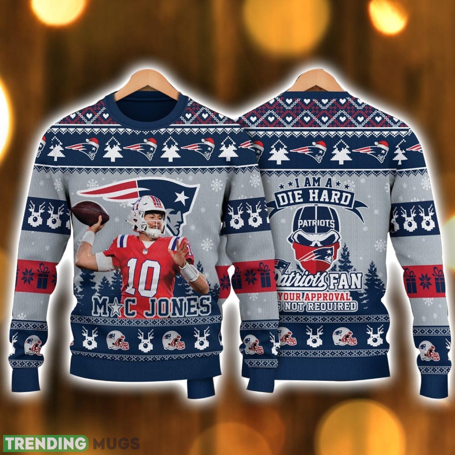 Surprise your loved ones or treat yourself to this unique Christmas gift that embodies team spirit and holiday cheer. Don’t miss out on the opportunity to spread festive joy while proudly displaying your loyalty to the New England Patriots. Grab the Mac Jones New England Patriots I Am A Die Hard Patriots Fan NFL Ugly Christmas Sweater today and make this holiday season one to remember!