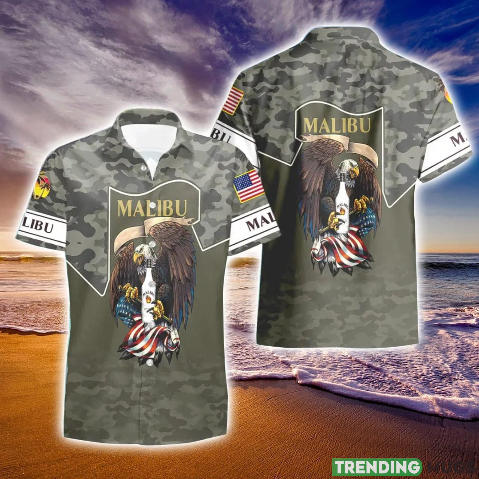 Malibu Rum Green Camo Eagle Usa Flag Hawaiian Shirt And Shorts Best Gift For Summer Holiday Details: