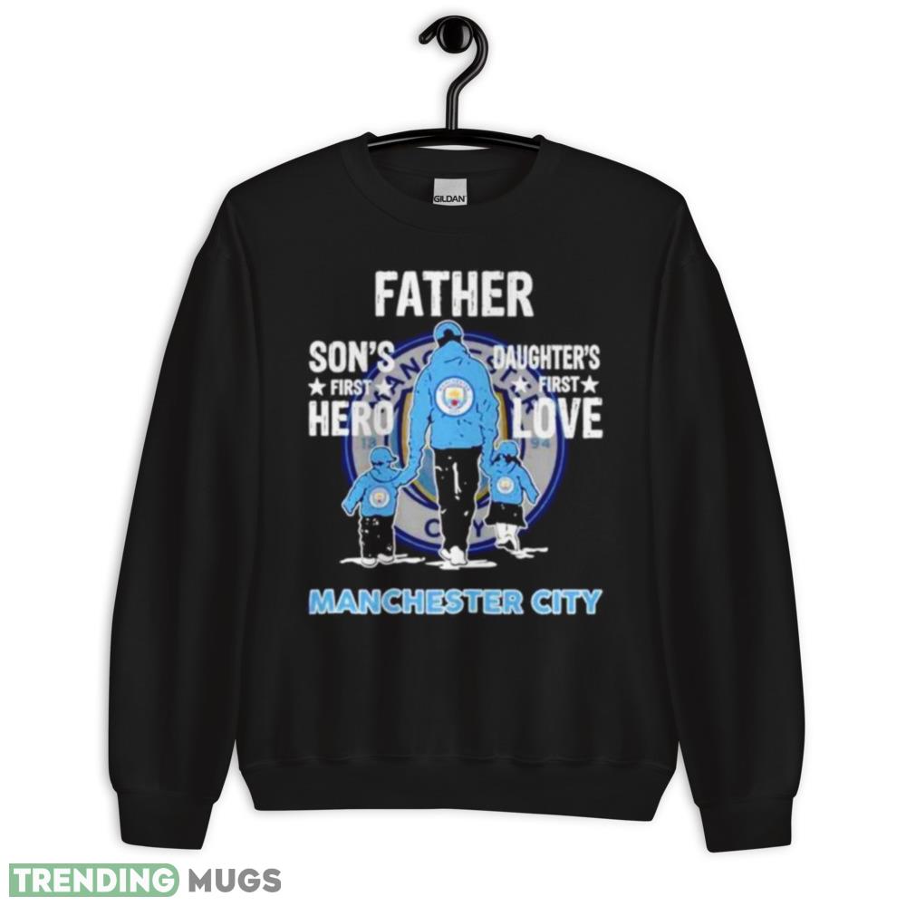 The Manchester City Father Son’s First Hero Daughter’s First Love Shirt is the perfect addition to your family’s wardrobe! Show your love for the team while also celebrating the special bond between a father and his son, as well as a daughter’s first love. Made with high-quality materials, this shirt is not only stylish but also comfortable to wear. Whether you’re watching the game together or just going out for a day of fun, this shirt is sure to bring you closer and make memories that will last a lifetime. Don’t miss out on this unique and meaningful piece of Manchester City fan gear!