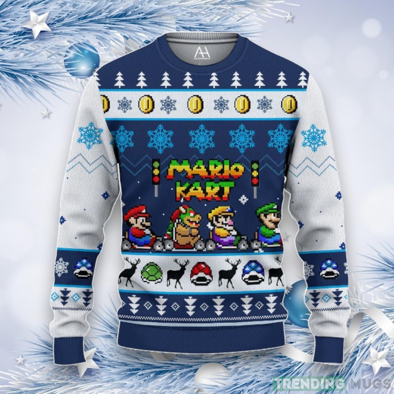 Whether you’re attending an ugly Christmas sweater party or simply want to spread some gaming cheer during the holiday season, our Mario Kart 3D All Over Printed Ugly Christmas Sweater is the ultimate choice. Embrace the spirit of the holidays and show off your love for Mario Kart with this eye-catching and unique sweater. Don’t miss out on the chance to be the most stylish racer on the virtual or real track this Christmas!