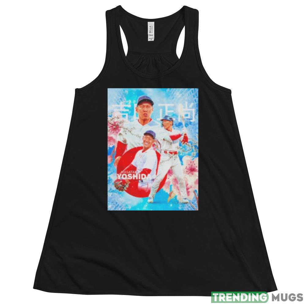 The shirt features a stunning floral design that is inspired by the famous Japanese artist Masataka Yoshida. The intricate details of the flowers and leaves are truly mesmerizing and will catch the eye of anyone who sees it.