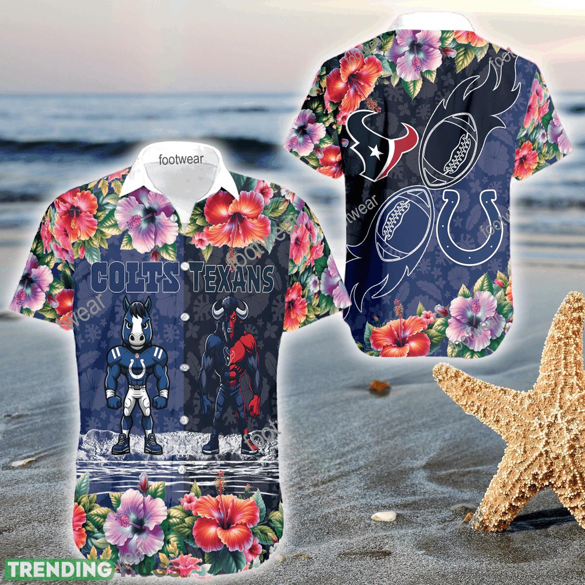 Mascot Indianapolis Colts VS Houston Texans 3D Hawaiian Shirt Hibiscus For Men Women – Mascot Indianapolis Colts VS Houston Texans 3D Hawaiian Shirt Hibiscus For Men Women