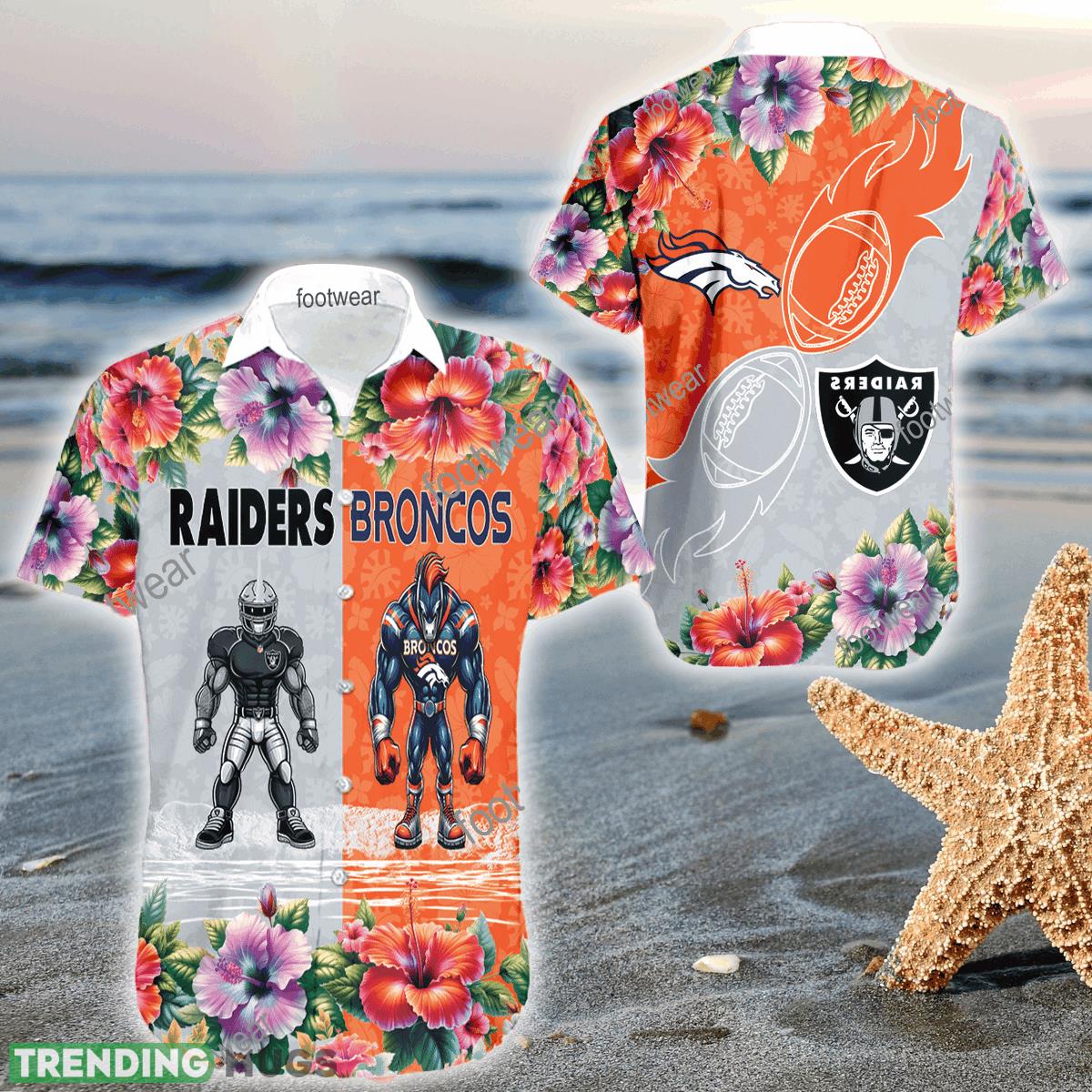 Mascot Las Vegas Raiders VS Denver Broncos 3D Hawaiian Shirt Hibiscus For Men Women Details: