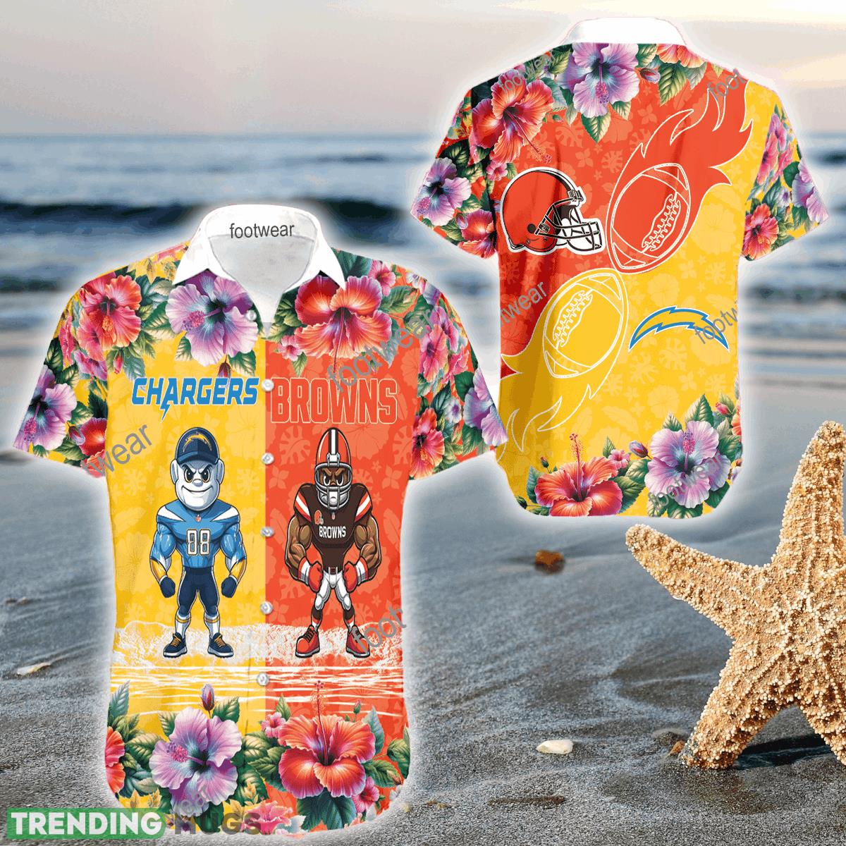 Mascot Los Angeles Chargers VS Cleveland Browns 3D Hawaiian Shirt Hibiscus For Men Women Details: