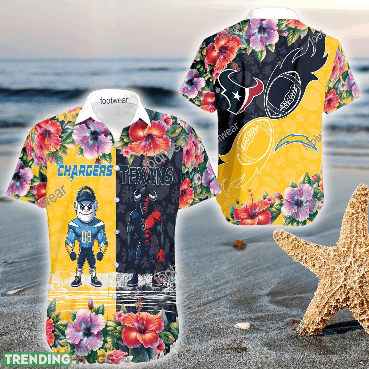 Mascot Los Angeles Chargers VS Houston Texans 3D Hawaiian Shirt Hibiscus For Men Women Details: