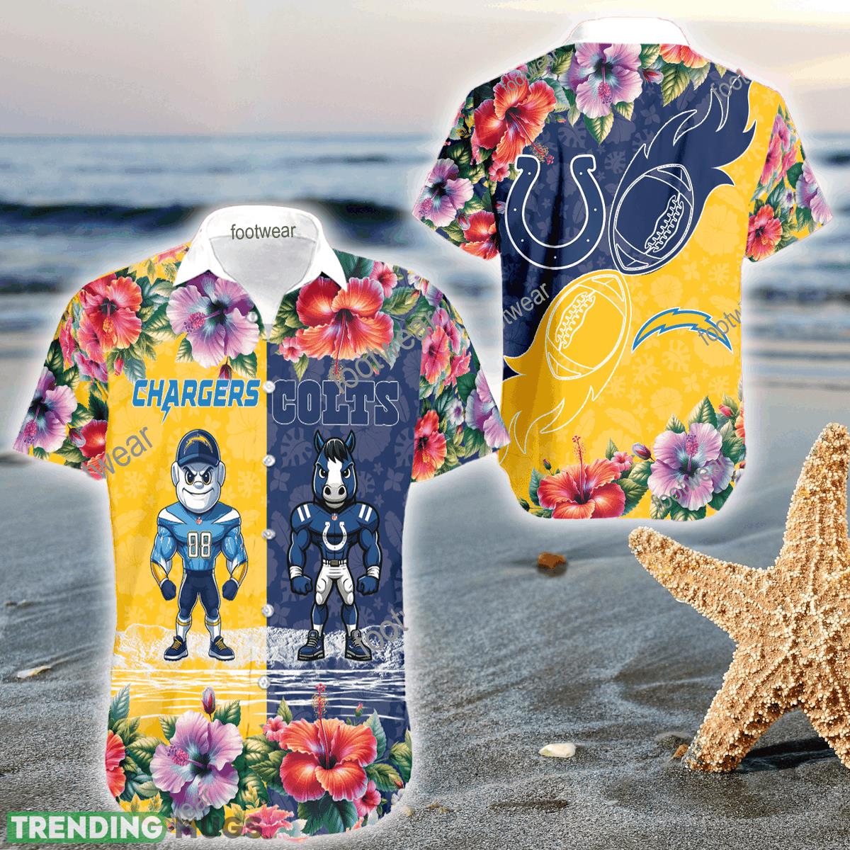Some of the Mascot Los Angeles Chargers VS Indianapolis Colts 3D Hawaiian Shirt Hibiscus For Men Women photos