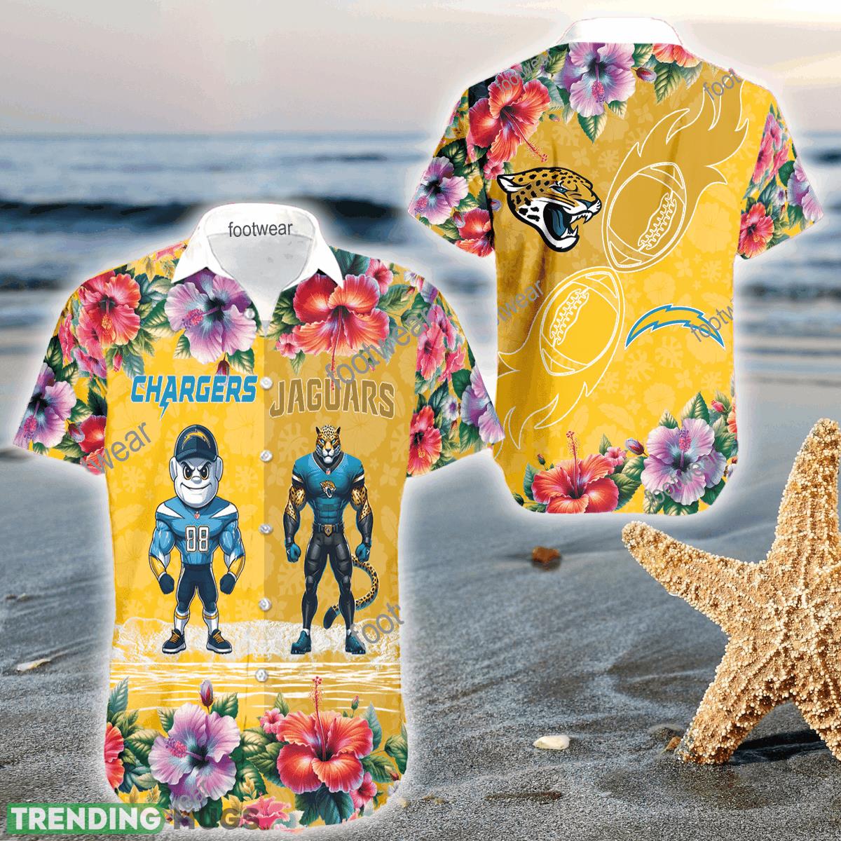 Mascot Los Angeles Chargers VS Jacksonville Jaguars 3D Hawaiian Shirt Hibiscus For Men Women Details: