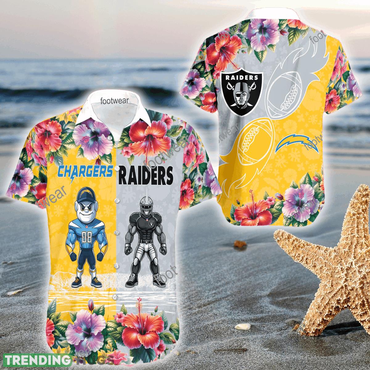 Mascot Los Angeles Chargers VS Las Vegas Raiders 3D Hawaiian Shirt Hibiscus For Men Women Details: