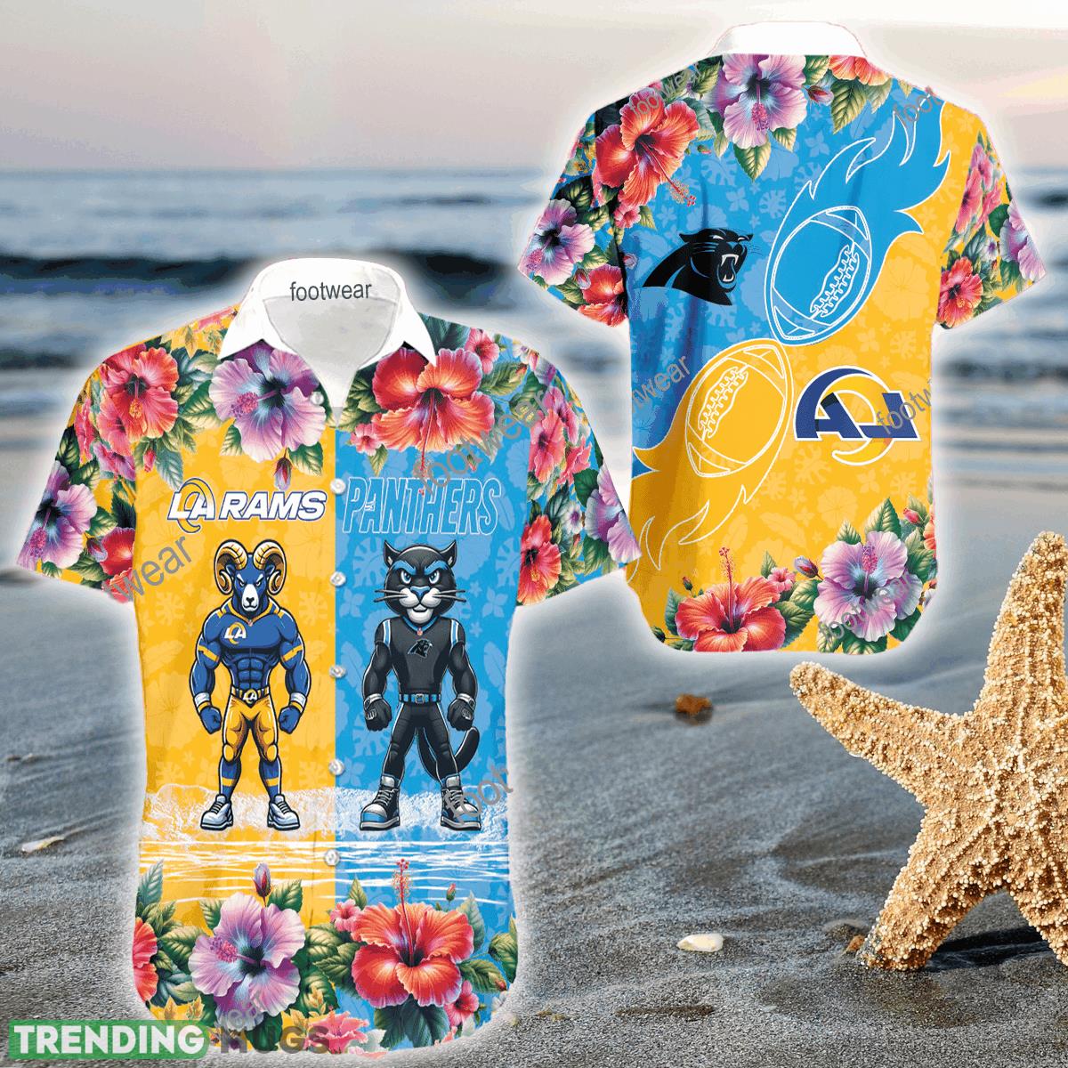 Mascot Los Angeles Rams VS Carolina Panthers 3D Hawaiian Shirt Hibiscus For Men Women – Mascot Los Angeles Rams VS Carolina Panthers 3D Hawaiian Shirt Hibiscus For Men Women