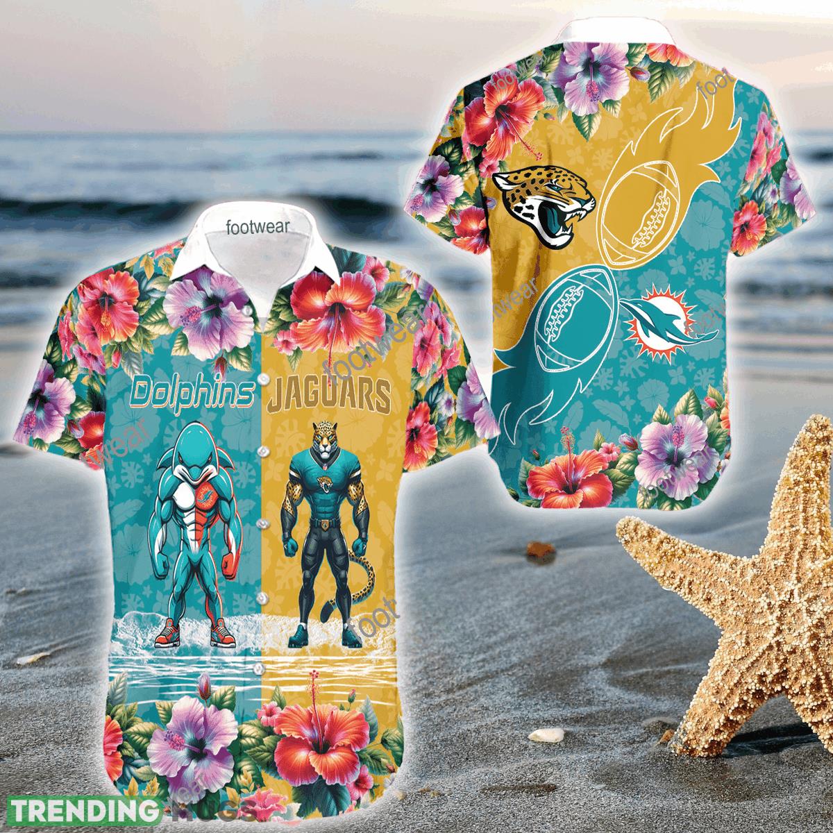 Mascot Miami Dolphins VS Jacksonville Jaguars 3D Hawaiian Shirt Hibiscus For Men Women Details: