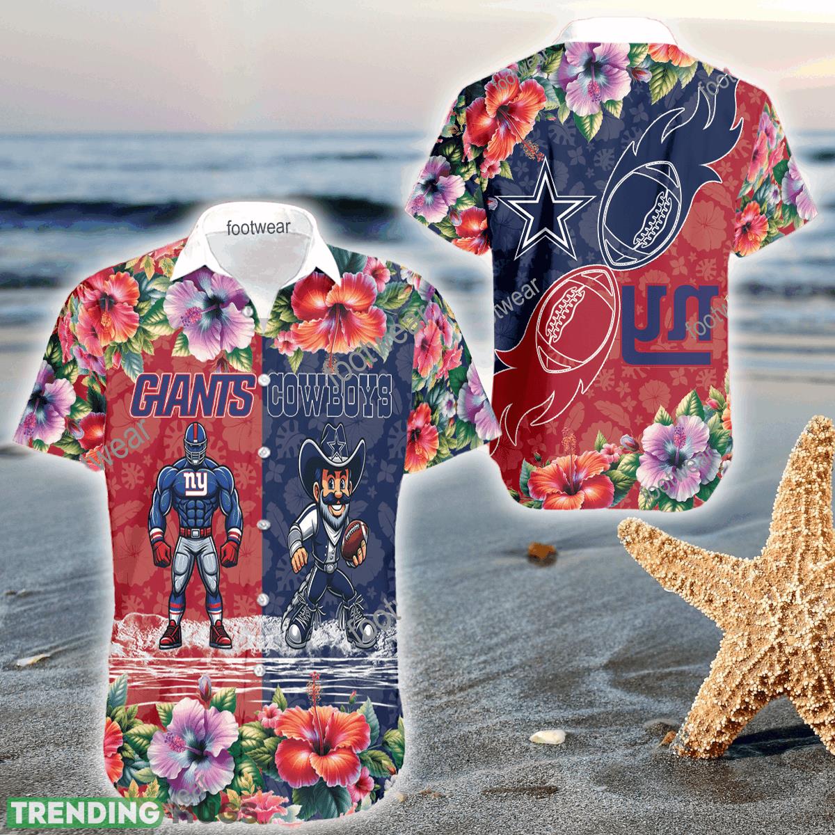 Mascot New York Giants VS Dallas Cowboys 3D Hawaiian Shirt Hibiscus For Men Women Details: