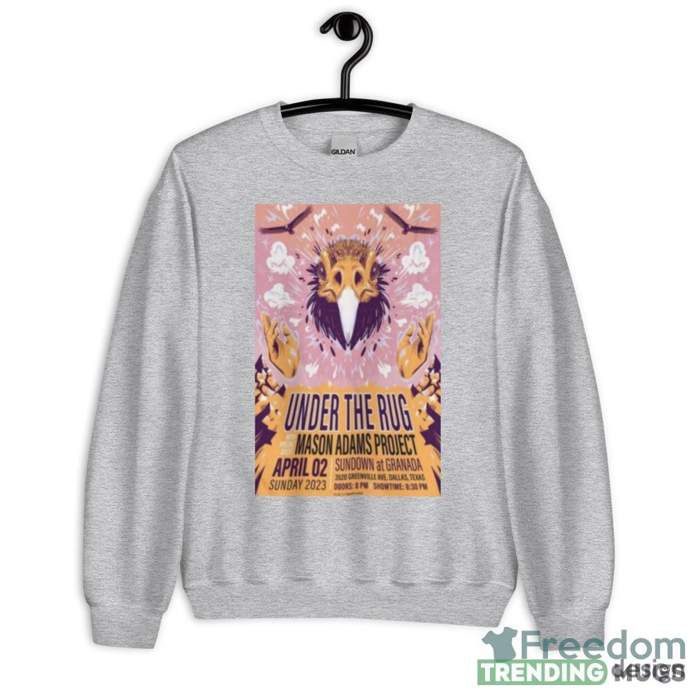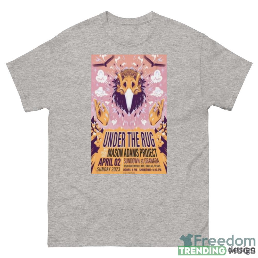 The Mason Adams Project Under The Rug Sundown at Granada Dallas TX Apr 2 2023 Shirt is the ultimate collector’s item for any music aficionado. This limited edition shirt commemorates the iconic performance by Mason Adams at the Sundown at Granada in Dallas, Texas on April 2nd, 2023.