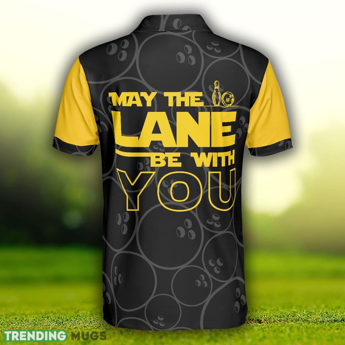 Some of the May The Lane Be With You, Black And Yellow Bowling Ball Pattern Shirt, Funny Sayings Shirt Polo Shirt photos