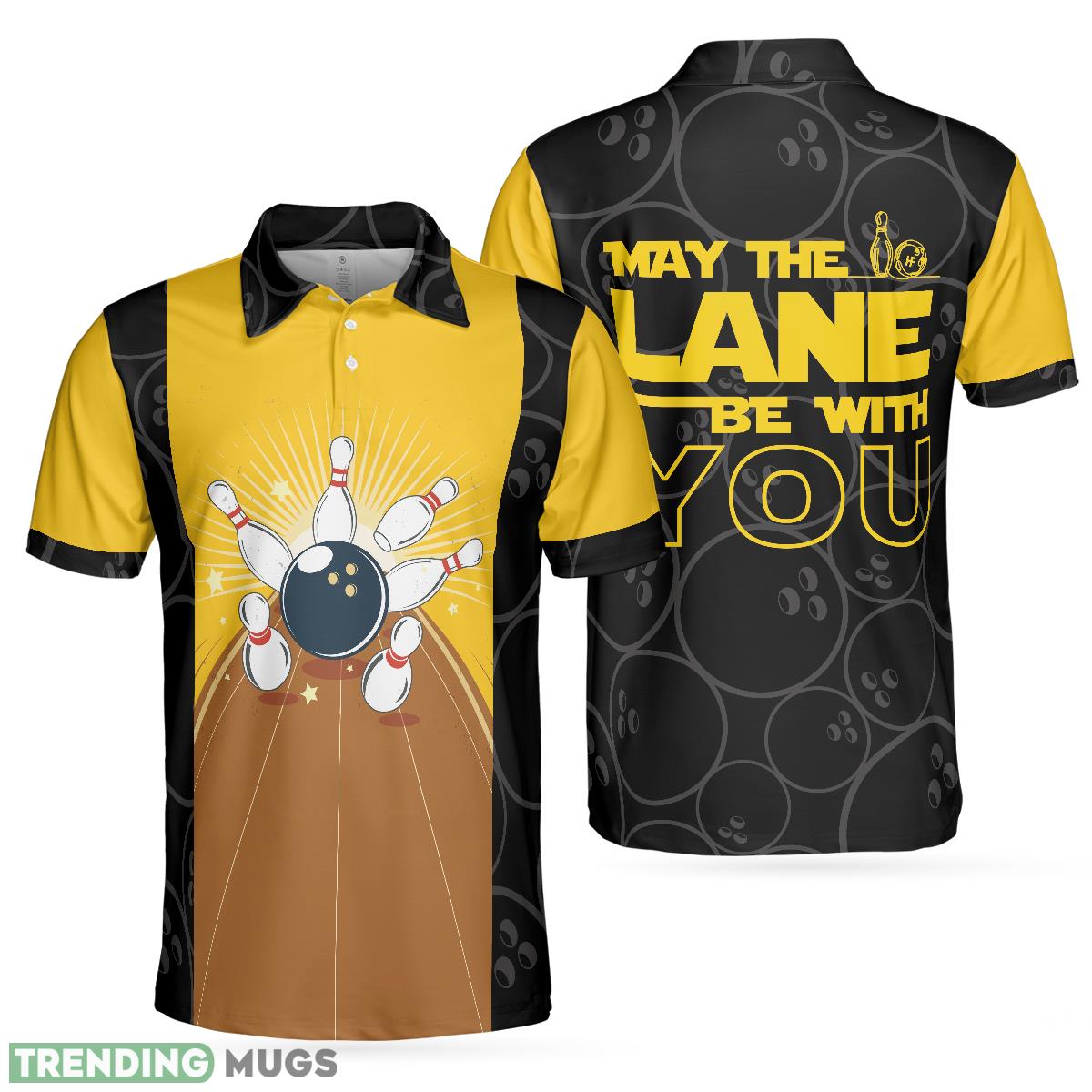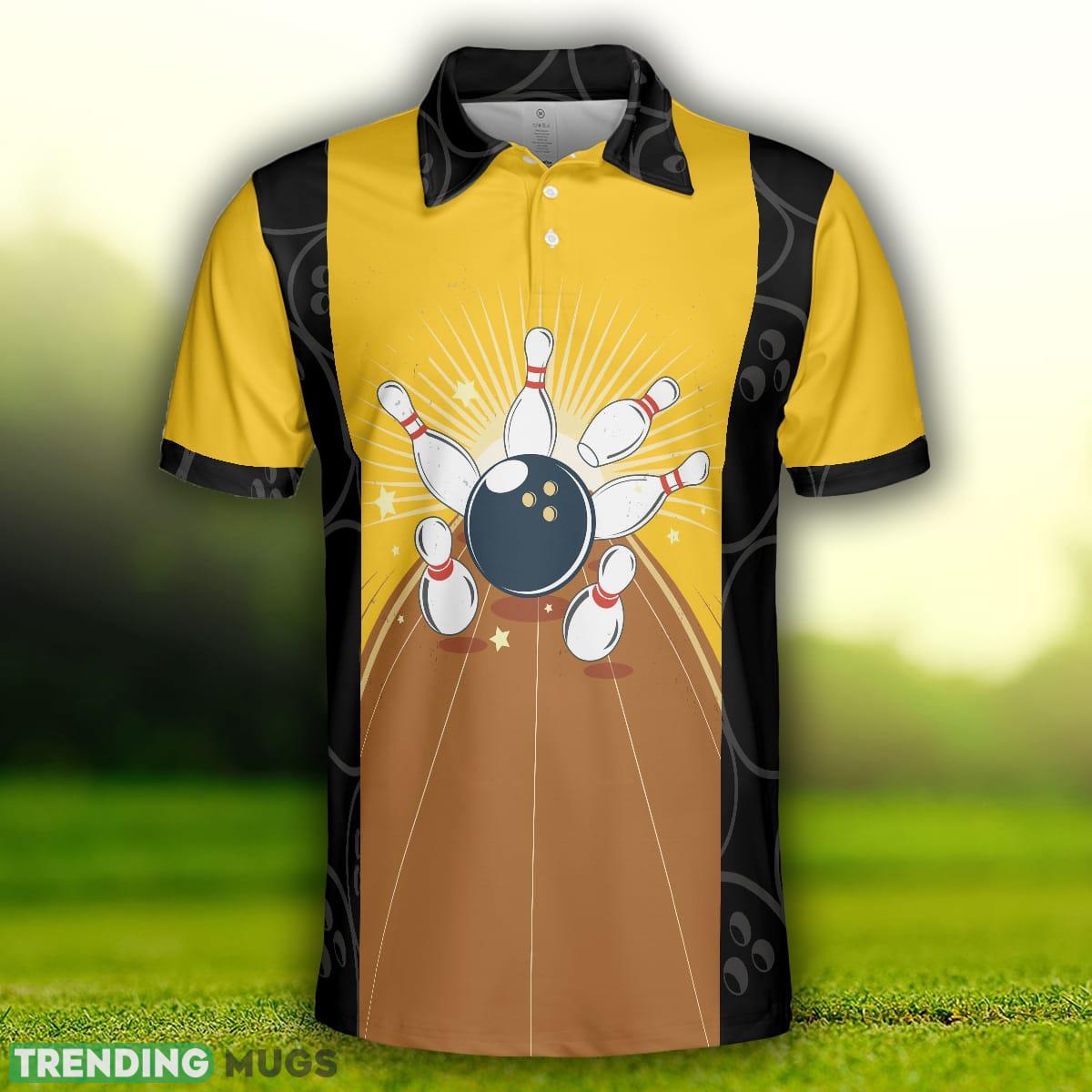 May The Lane Be With You, Black And Yellow Bowling Ball Pattern Shirt is the perfect blend of style and humor for avid bowlers and funny shirt enthusiasts alike. Crafted with care, this polo shirt is designed to make a bold statement wherever you go.